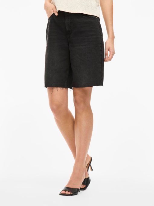 • Denim bermuda shorts• High waist• Zip and button fastening• Front and back pockets• Belt loops• Raw edge• Regular fit• Inseam: 26 cm in size 38• Frontrise: 30 cm in size 38