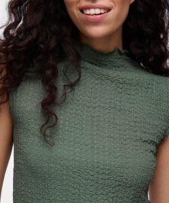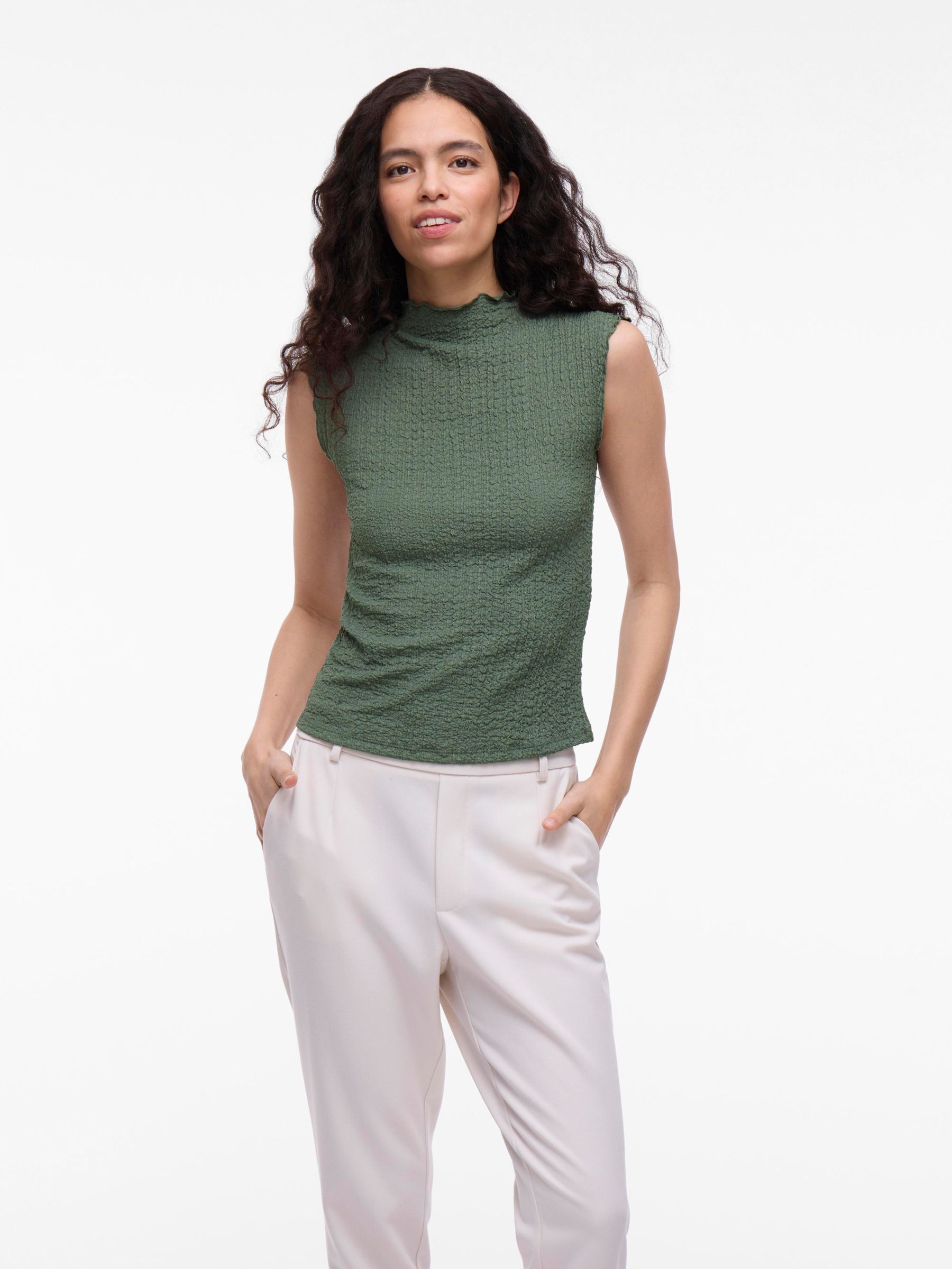 • Textured sleeveless top• High neck• Lettuce trim• Regular fit• Length: 55 cm in size M