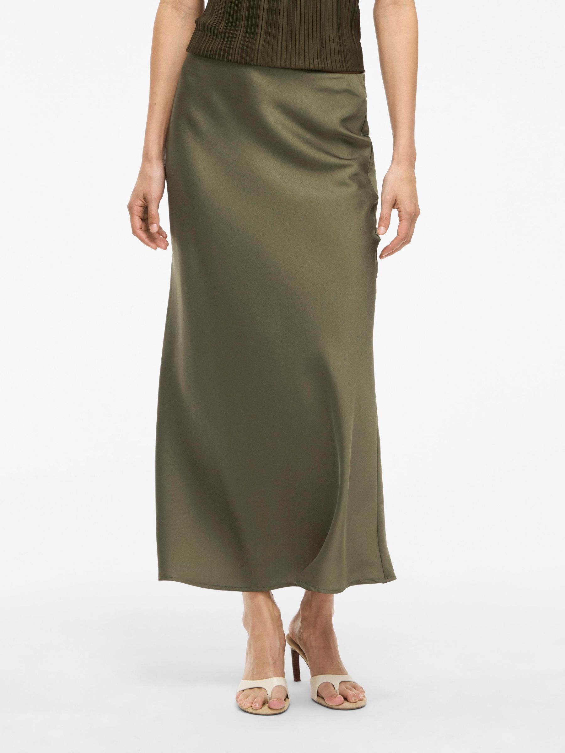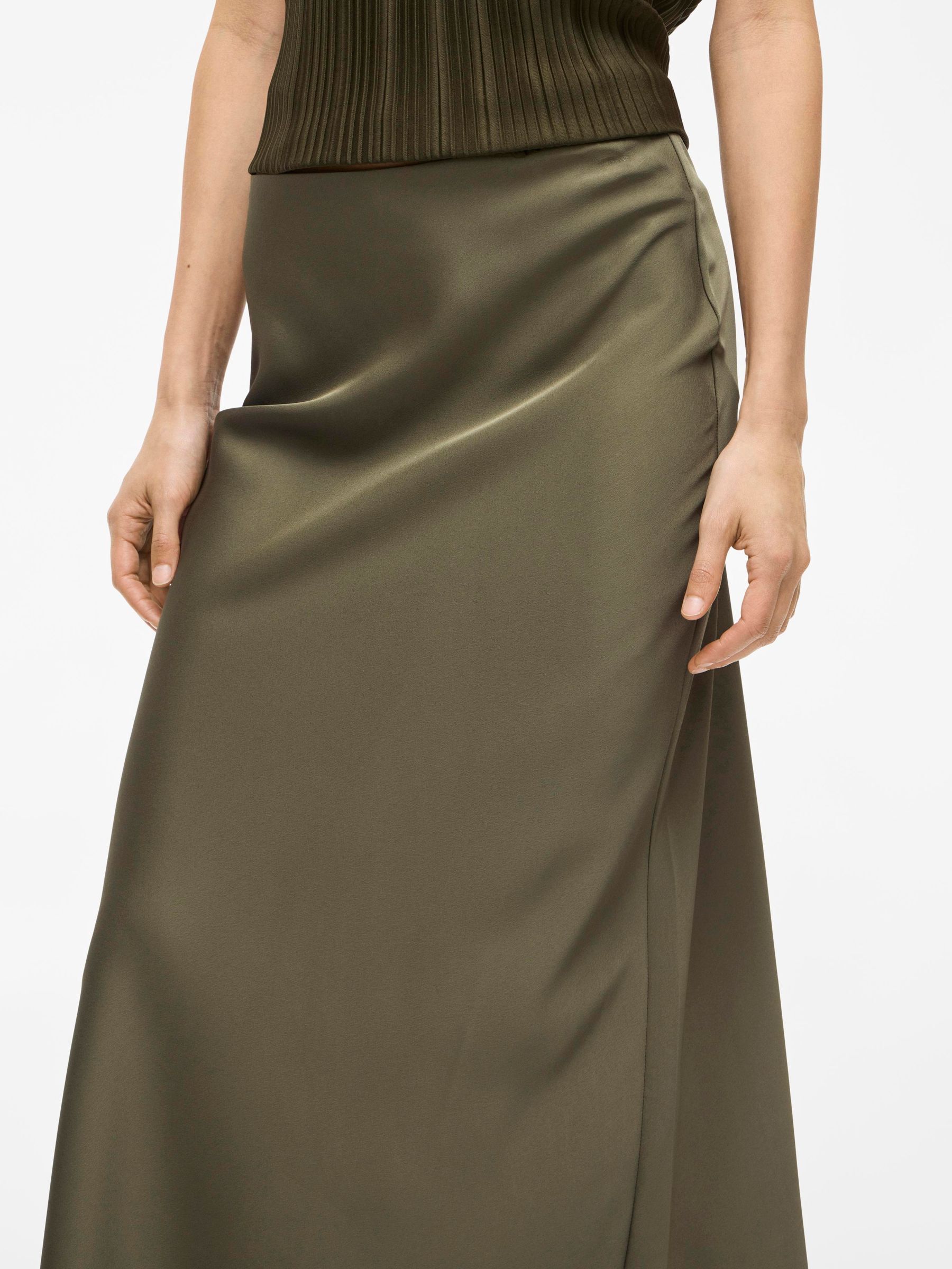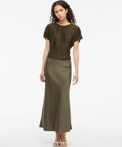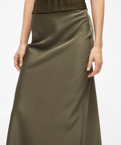 VILA Women’s Viellette High Waist Midi Skirt | Dusty Olive