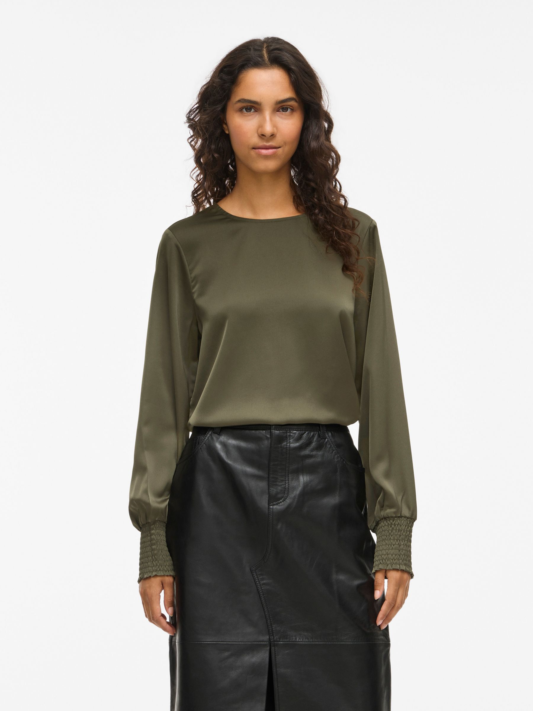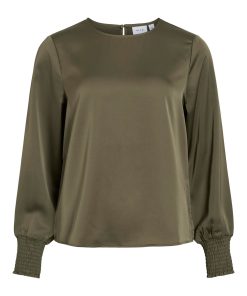 VILA Women’s Viellette Round Neck Long Sleeved Top | Dusty Olive