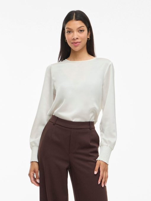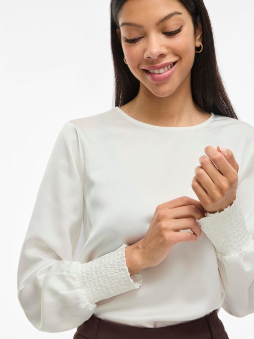 • Elegant long sleeved top• Round neck with button-keyhole fastening• Smock cuffs• Elegant, shiny fabric• Regular fit• Length: 64 cm in size 38• Sleeve length: 65 cm in size 38