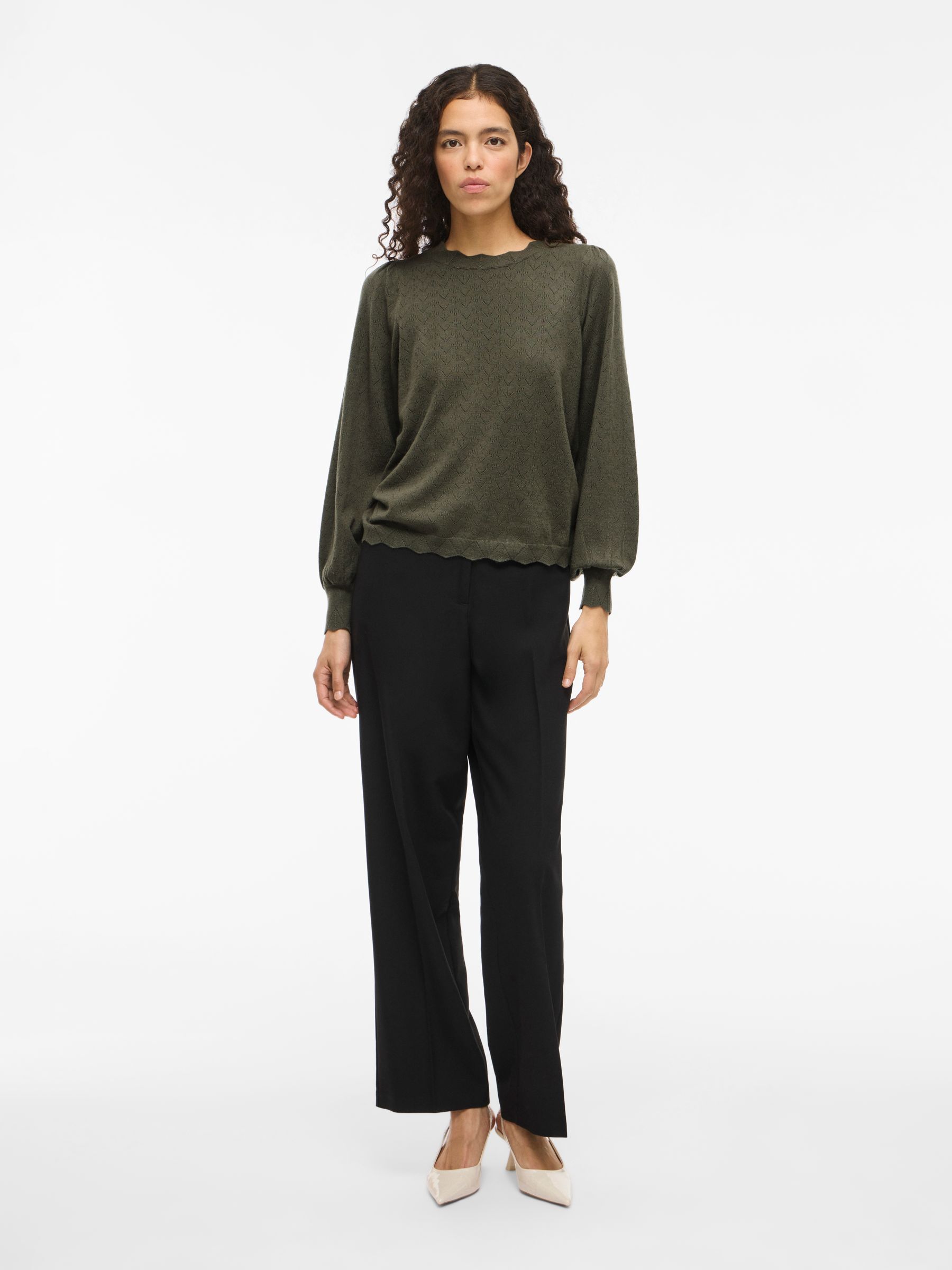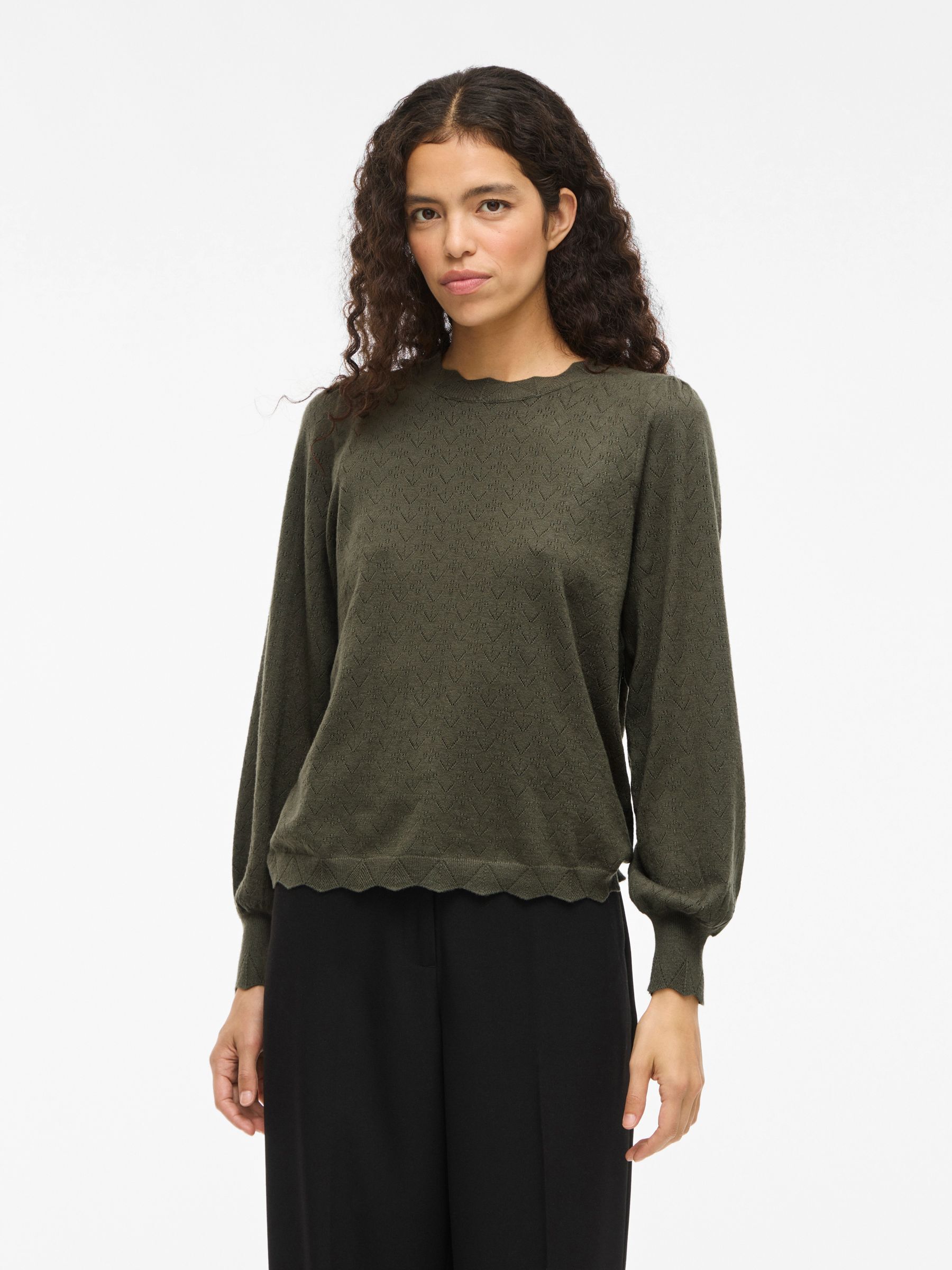 • Pointelle knitted pullover• Round neck• Soft, stretchy knit• Regular fit• Length: 58 cm in size M• Sleeve length: 68 cm in size M
