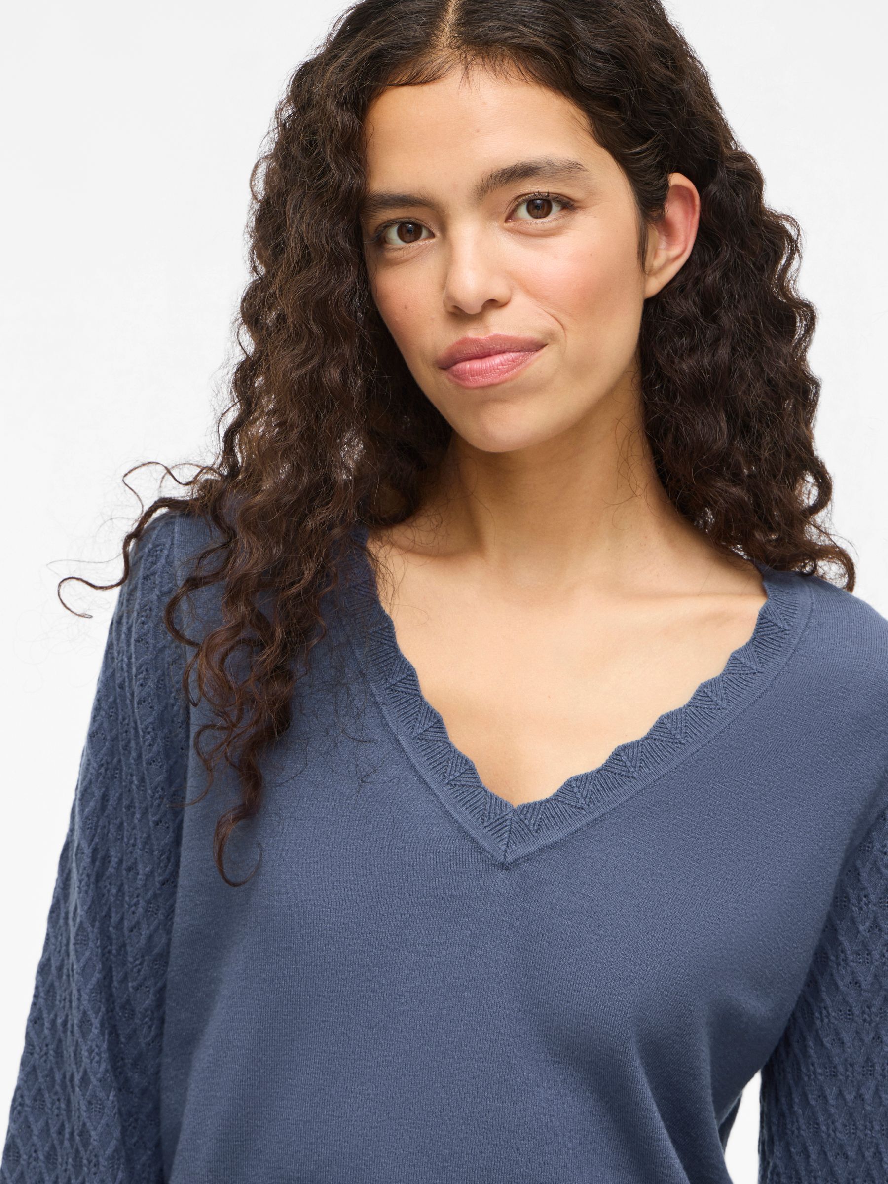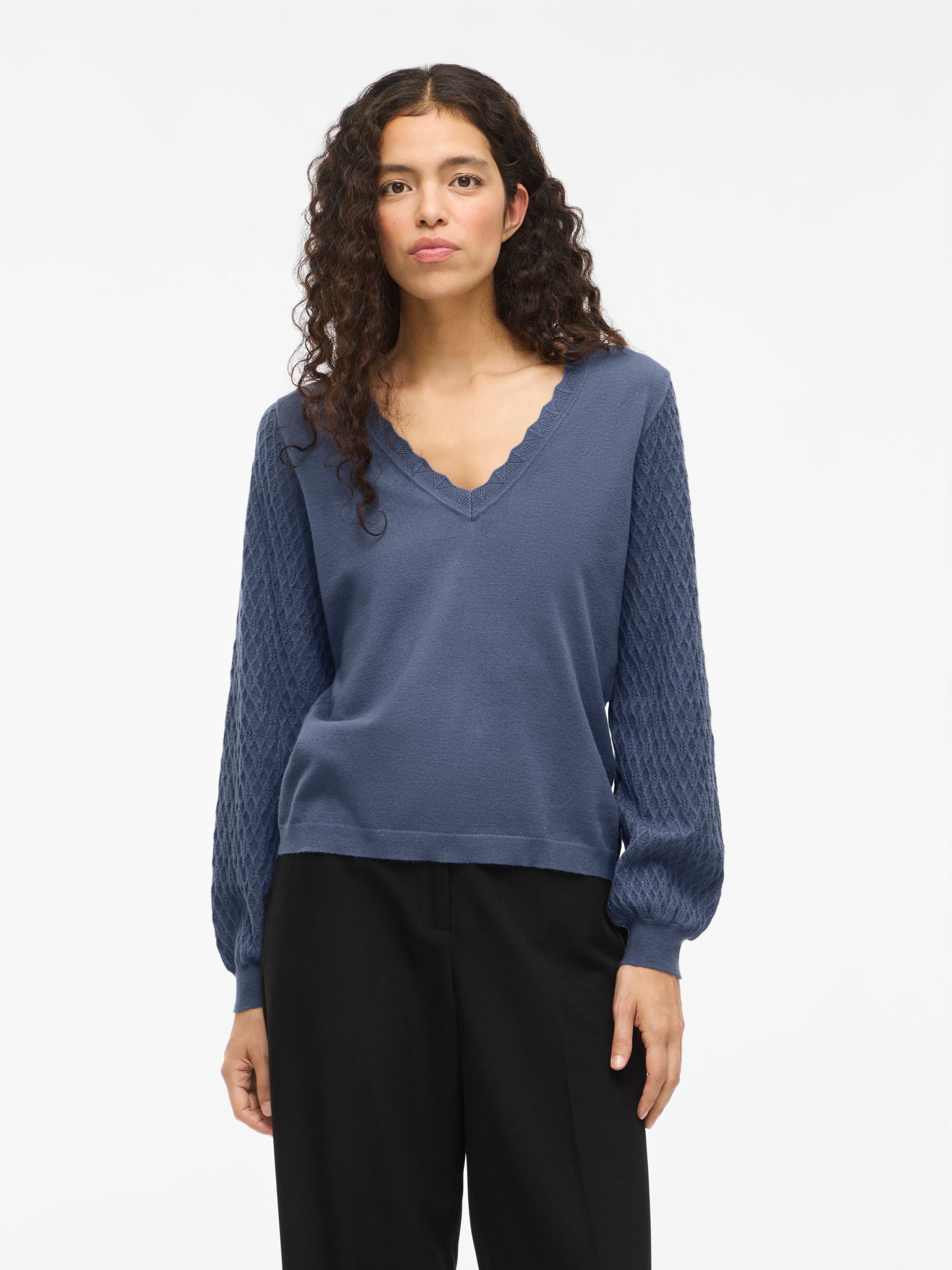 • Pointelle knitted pullover• V-neck • Ribbed trim• Soft, stretchy knit• Regular fit• Length: 58 cm in size M• Sleeve length: 68 cm in size M