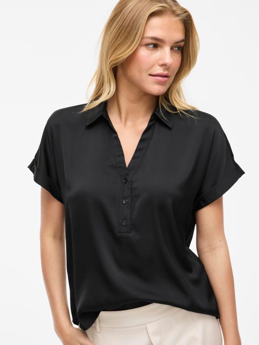 • Short sleeved shirt• Turn-up on sleeves• Elegant shiny fabric• Regular fit• Length: 62 cm in size 38• Sleeve length: 18 cm in size 38