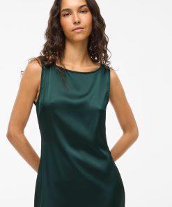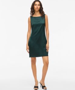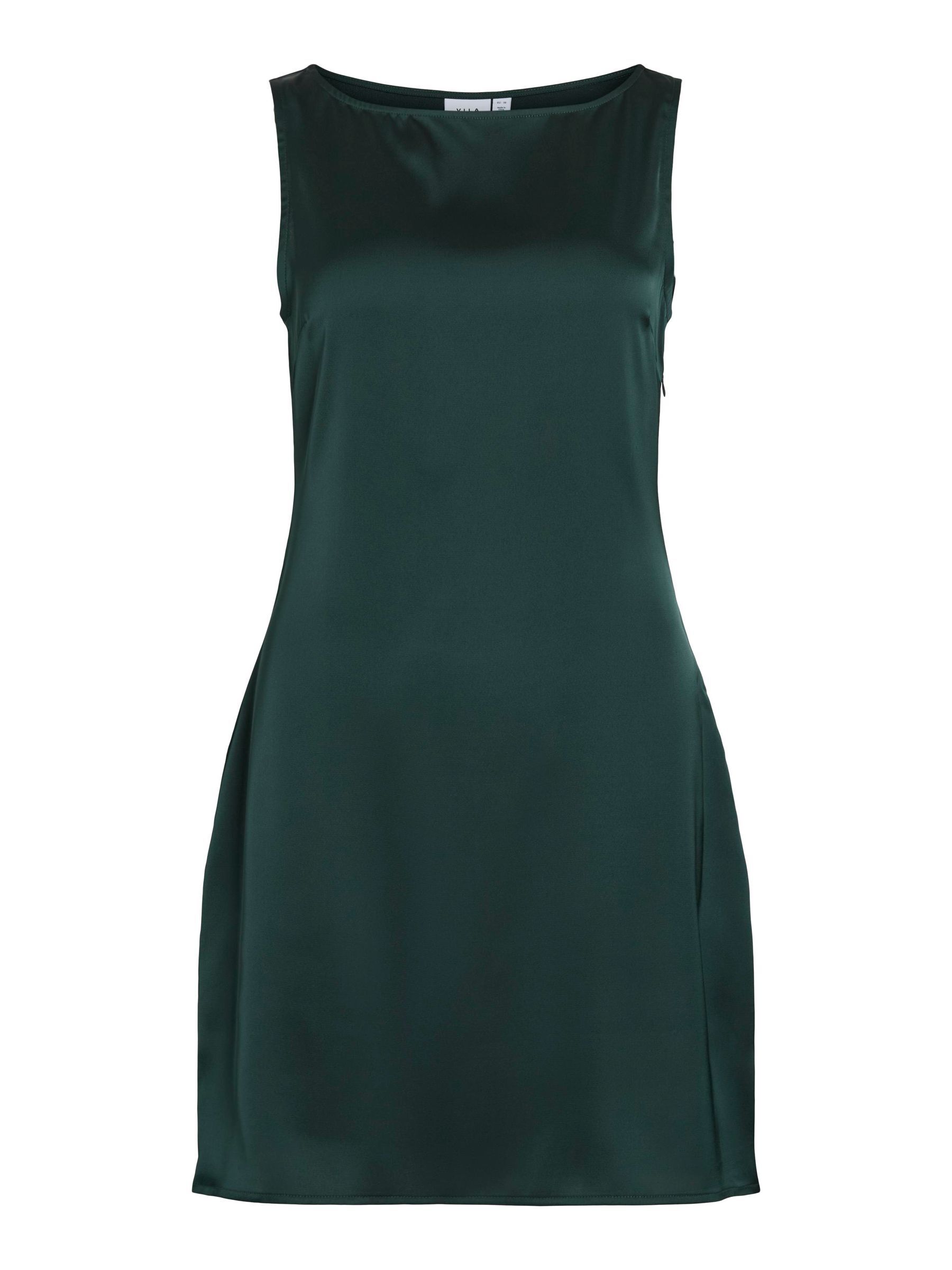 • Sleeveless short dress• Round neckline• Concealed side zip fastening• Satin-look• Regular fit• Length: 88 cm in size 38