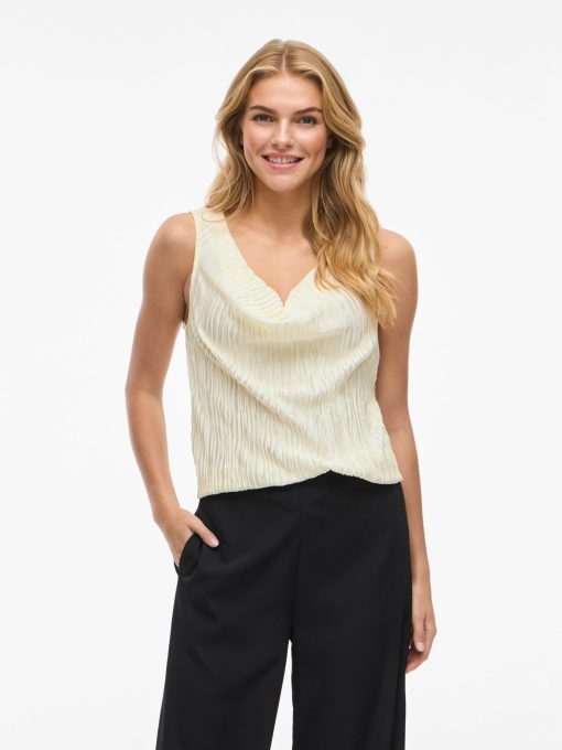 • Sleeveless pleated top• Waterfall neckline• Light fabric• Regular fit• Length: 60 cm in size M