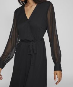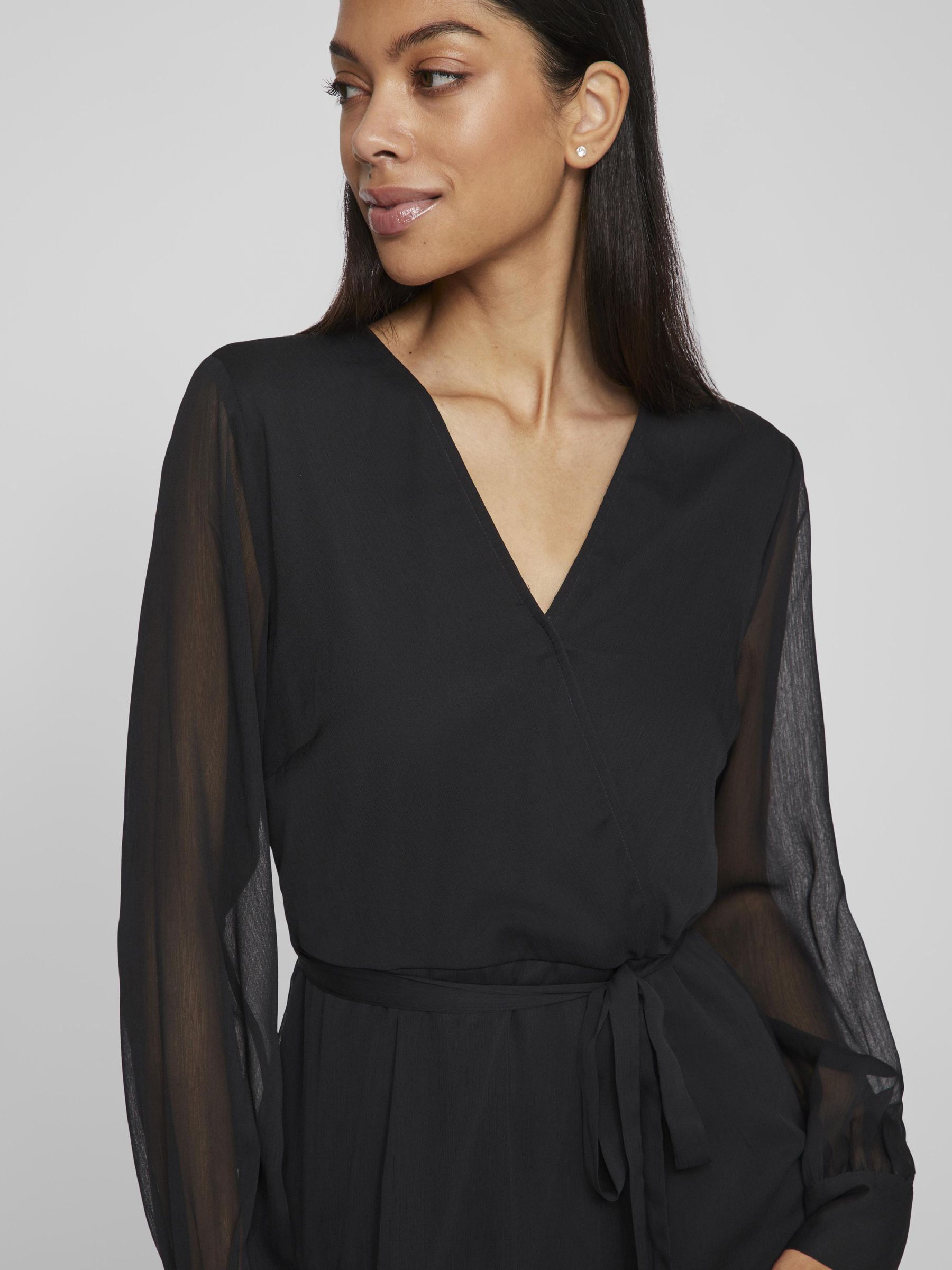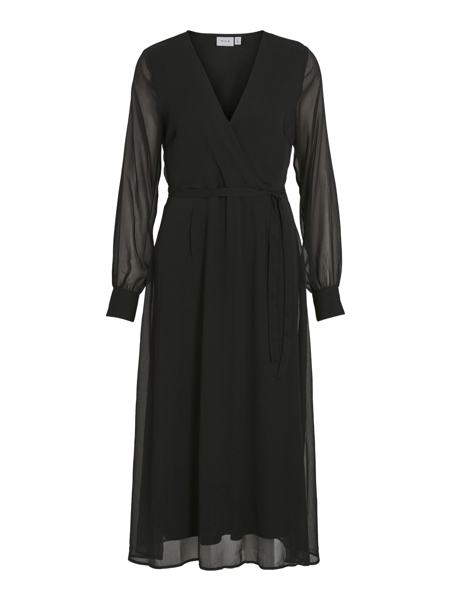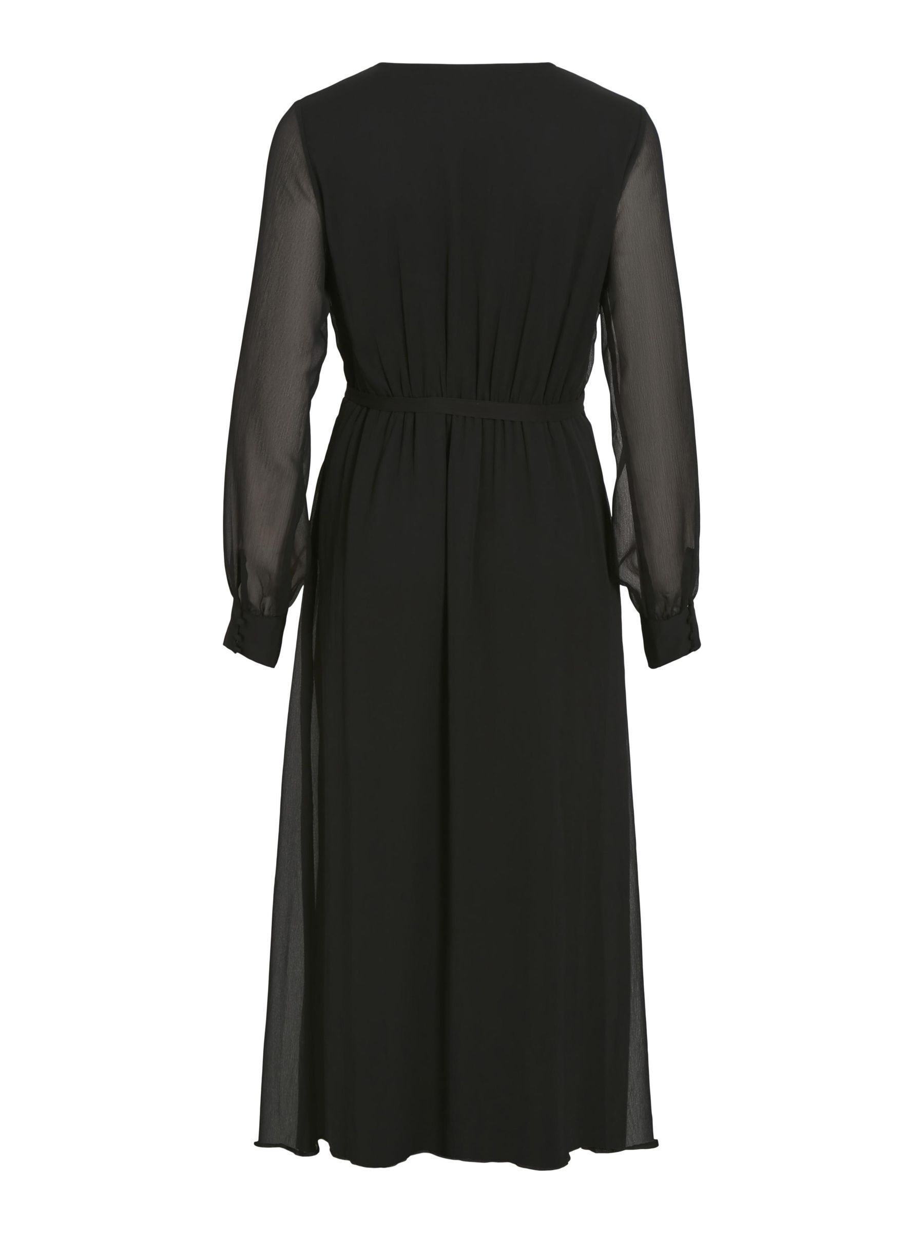 • Long sleeved, midi dress• Wrap dress• V-neck with removable stitch• Tie waist• Two layers• See-through material at the sleeves• Length: 130 cm in size 38