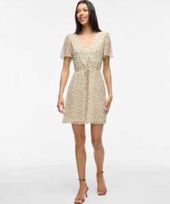 • Short sleeved short dress• V-neck• Drawstring at waist• Regular fit• Length: 90 cm in size 38• Sleeve length: 24 cm in size 38