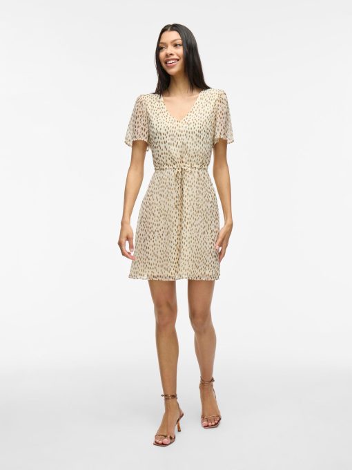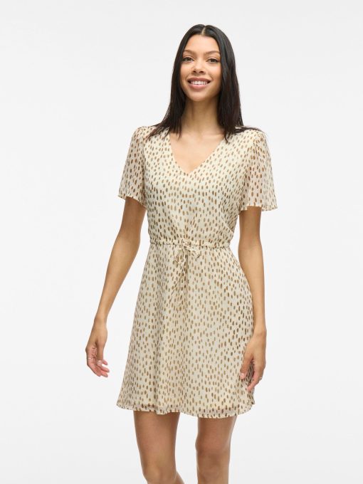 • Short sleeved short dress• V-neck• Drawstring at waist• Regular fit• Length: 90 cm in size 38• Sleeve length: 24 cm in size 38