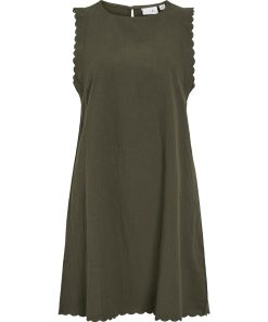 • Sleeveless short dress• Round neck with button-keyhole fastening• Scallop edge• Regular fit• Length: 90 cm in size 38