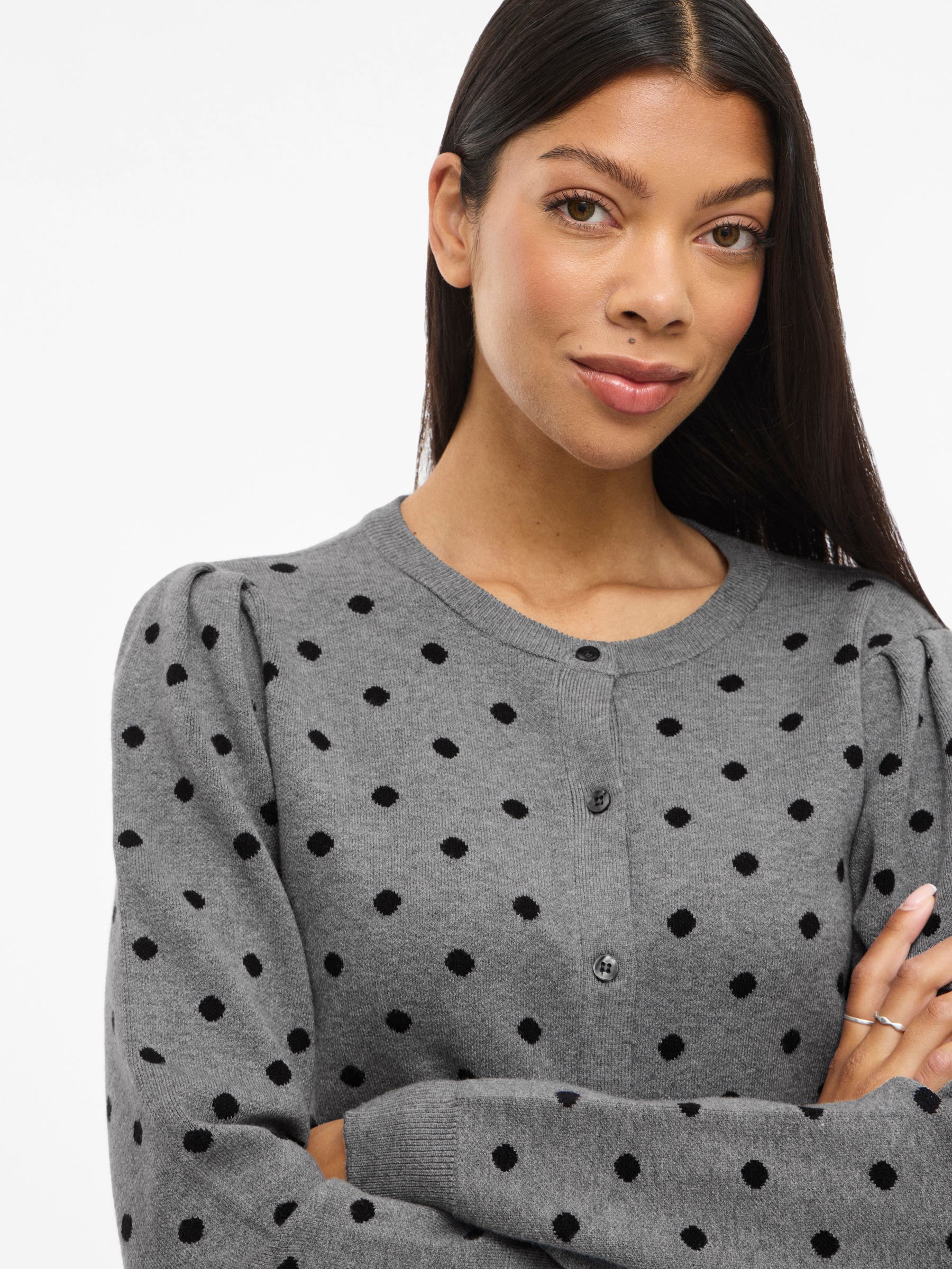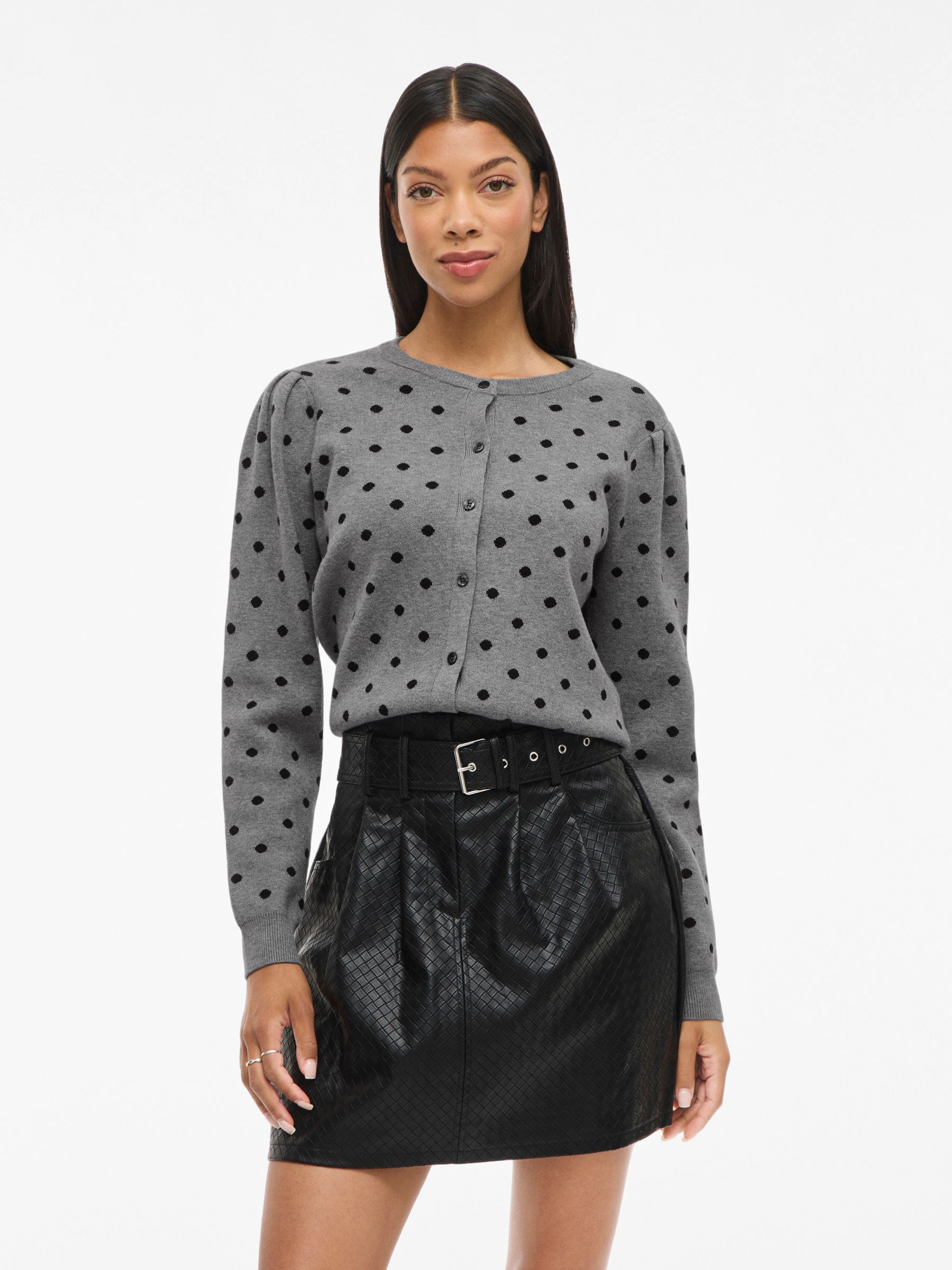 • Polka-dot knitted cardigan• Round neck• Front button fastening• Ribbed trims• Regular fit• Length: 58 cm in size M• Sleeve length: 64 cm in size M