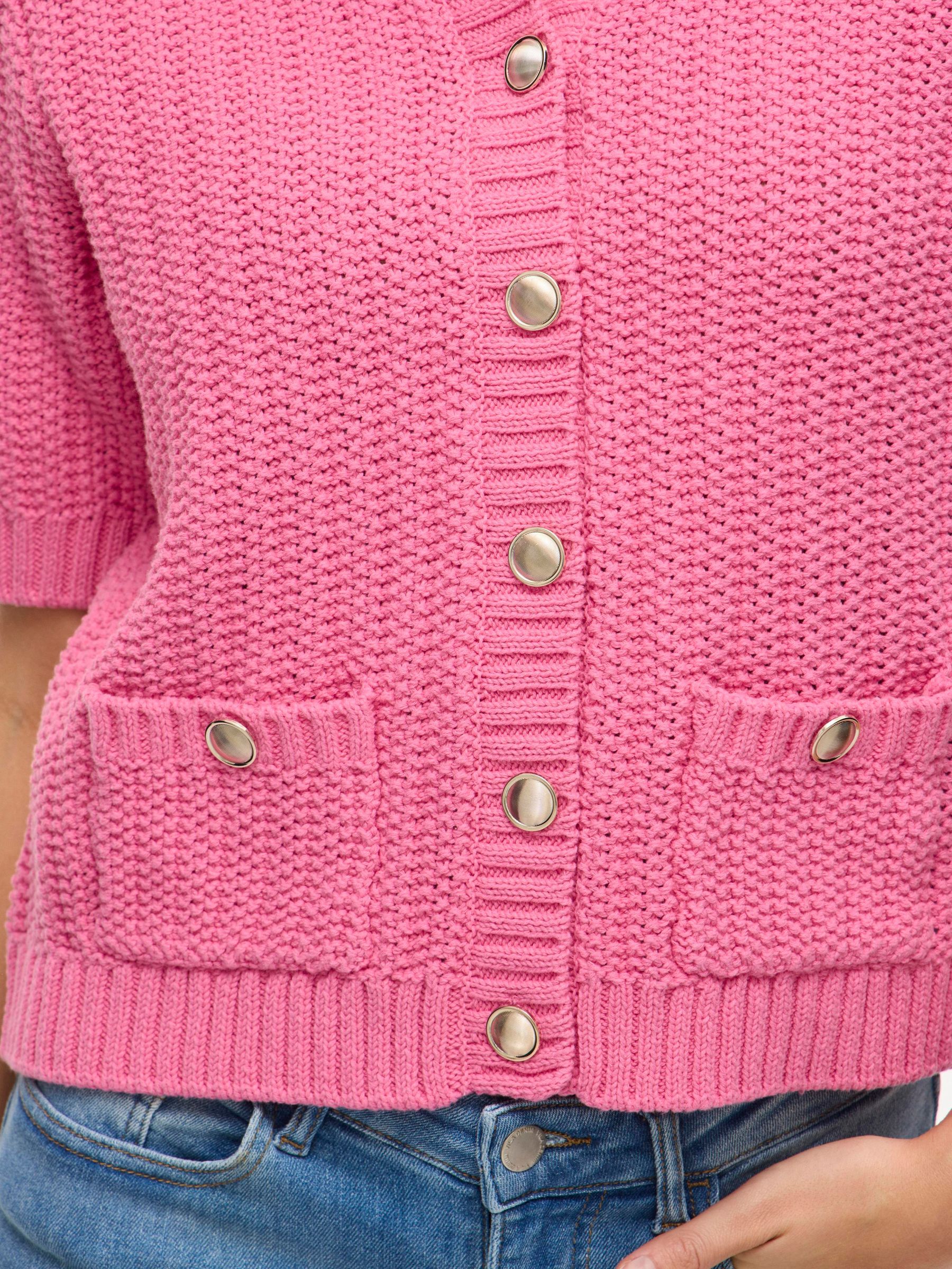 • Short-sleeved knitted cardigan• Front button fastening• Front pockets• Regular fit• Length: 52 cm in size M• Sleeve length: 30 cm in size M