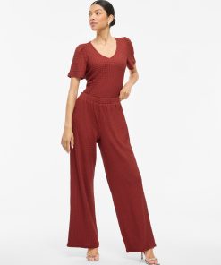 VILA Women’s Vigry Mid-waist Trousers | Red Ochre