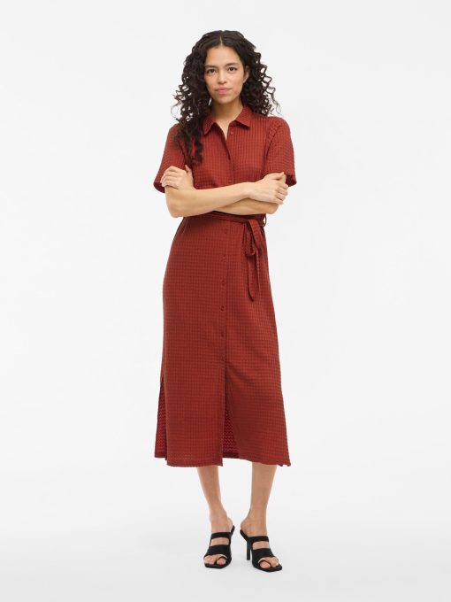 VILA Women’s Vigry Midi Shirt Dress | Red Ochre