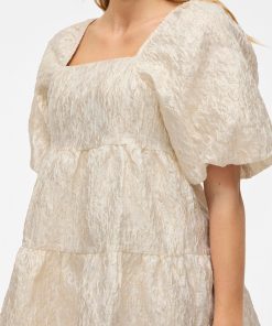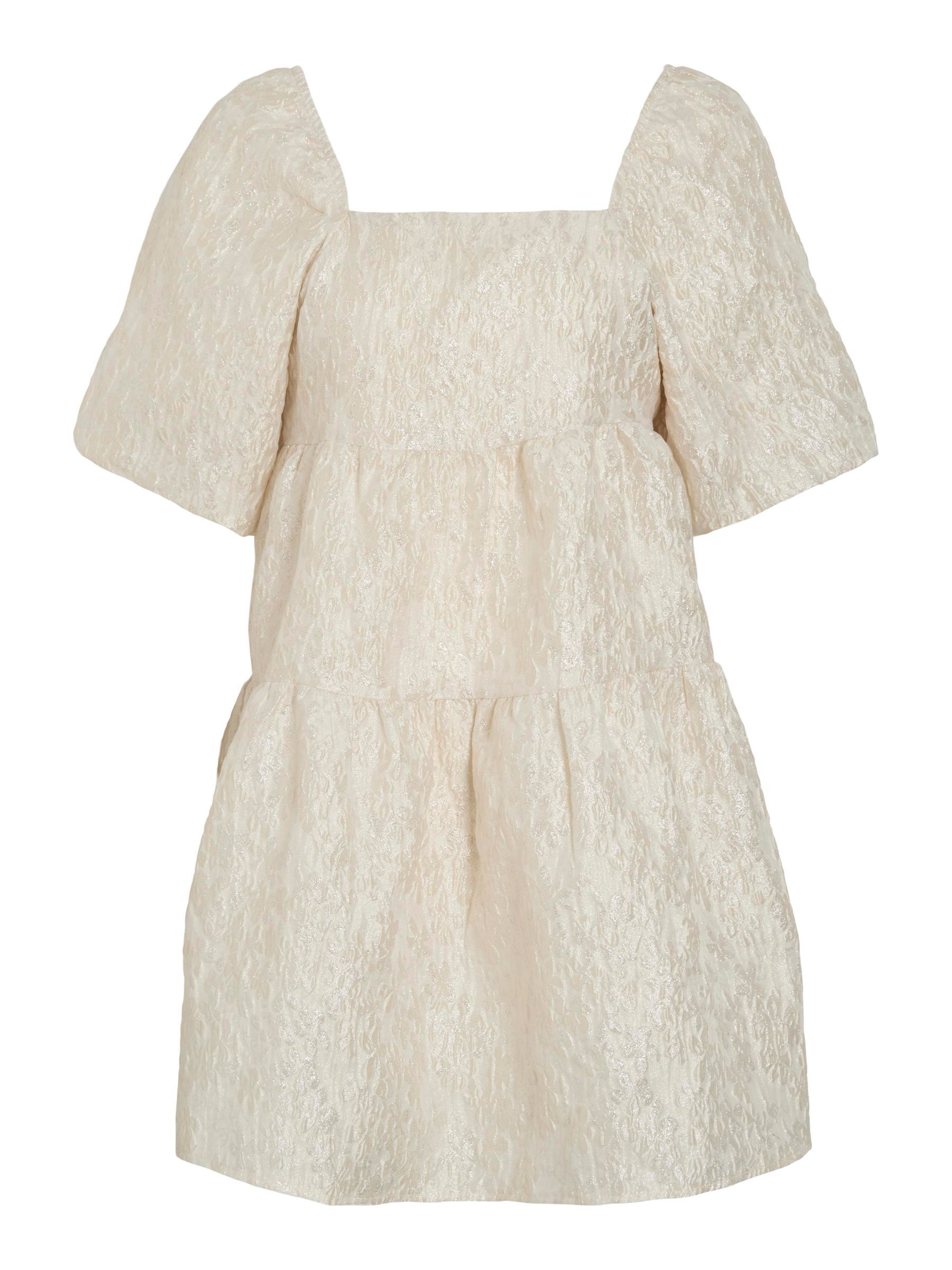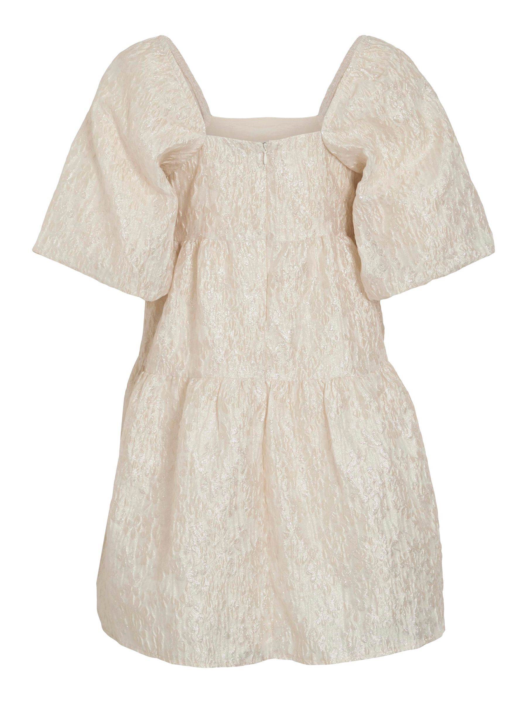 • Short dress• Short balloon sleeves• Square neckline• Concealed back zip fastening• Tiered design with metallic details• Fully lined• Regular fit• Length: 92 cm in size 38• Sleeve length: 33 cm in size 38
