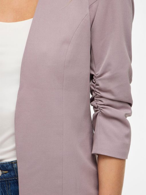 – Style name: VIHER ¾ BLAZER- Fine, open blazer- ¾ sleeves with wrinkle effect- Thin shoulder pads- Length: 71 cm in the front and 63 cm in the back in size M- Sleeve length: 47 cm