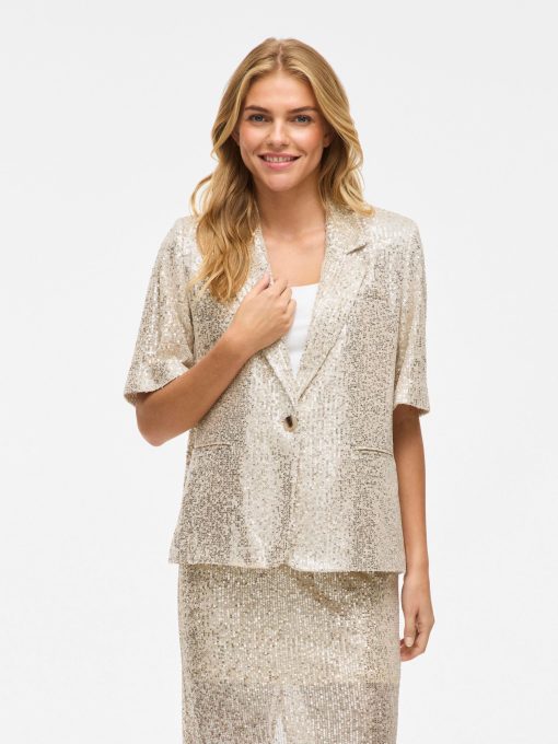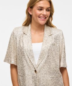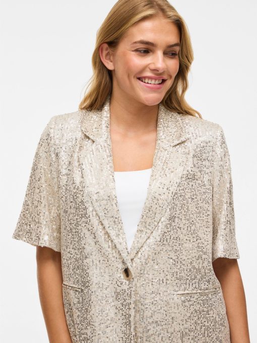 • Short sleeved sequin blazer• Padded shoulders• Single-button fastening• Slip pockets• Notch lapels• Fully lined• Regular fit• Length: 65 cm in size M• Sleeve length: 32 cm in size M