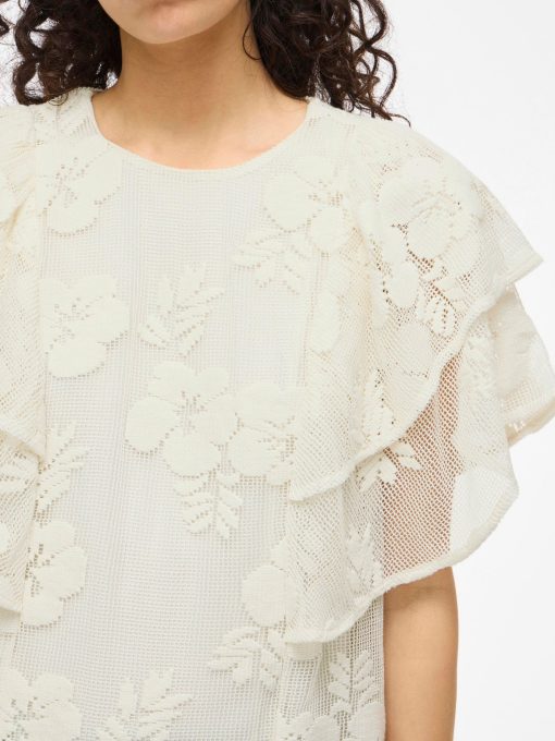 • Cap sleeve lace top• Round neck with button-keyhole fastening• Lined body with sheer overlay• Regular fit• Length: 62 cm in size M