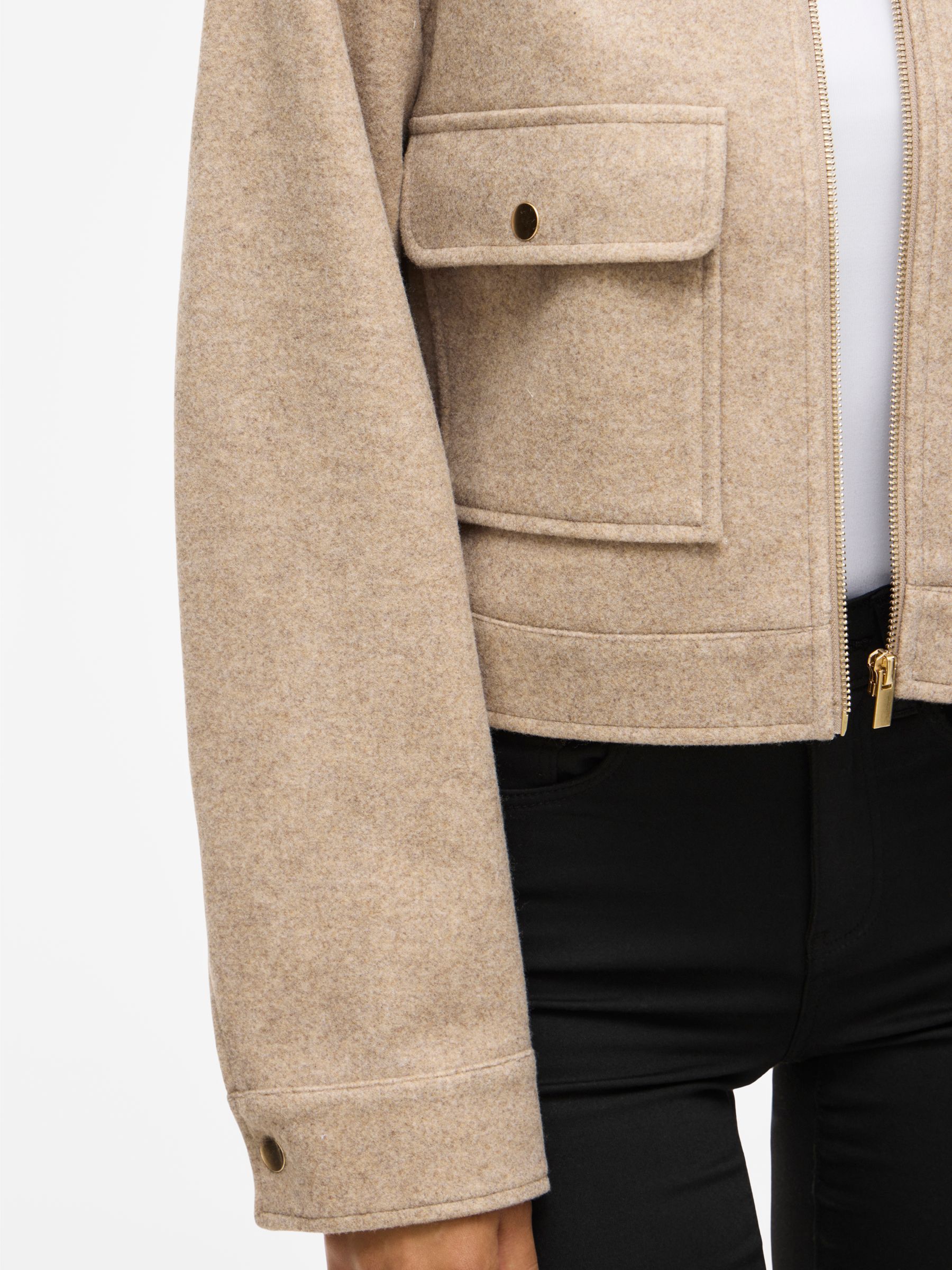 • Classic jacket• Zip closure• Front pockets• Buttoned cuffs• Regular fit• Length: 52 cm in size 38• Sleeve length: 64 cm in size 38
