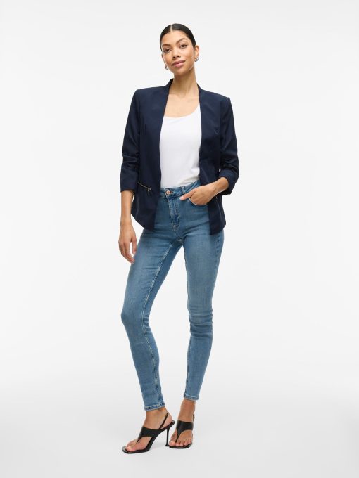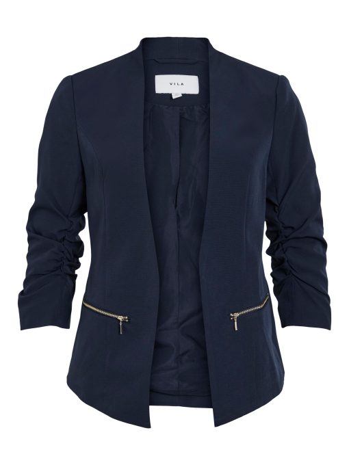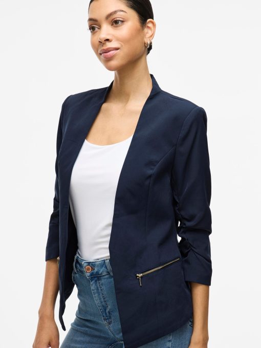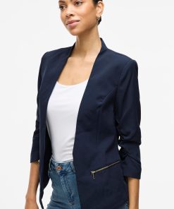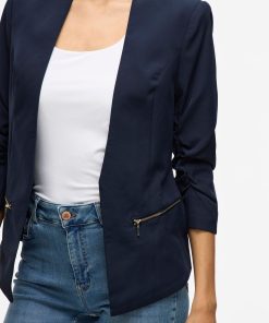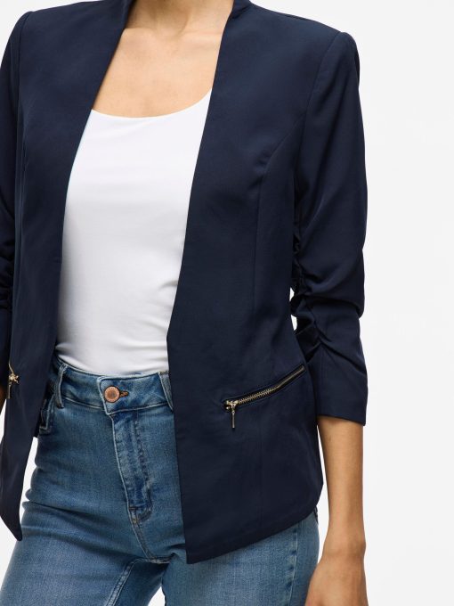 – 3/4 sleeved blazer – Open blazer- Two false pockets with zip closure- Light material- Length: 71 cm in size 38 – Sleeve length: 47 cm in size 38- Our model is 178 cm tall and wears size 38