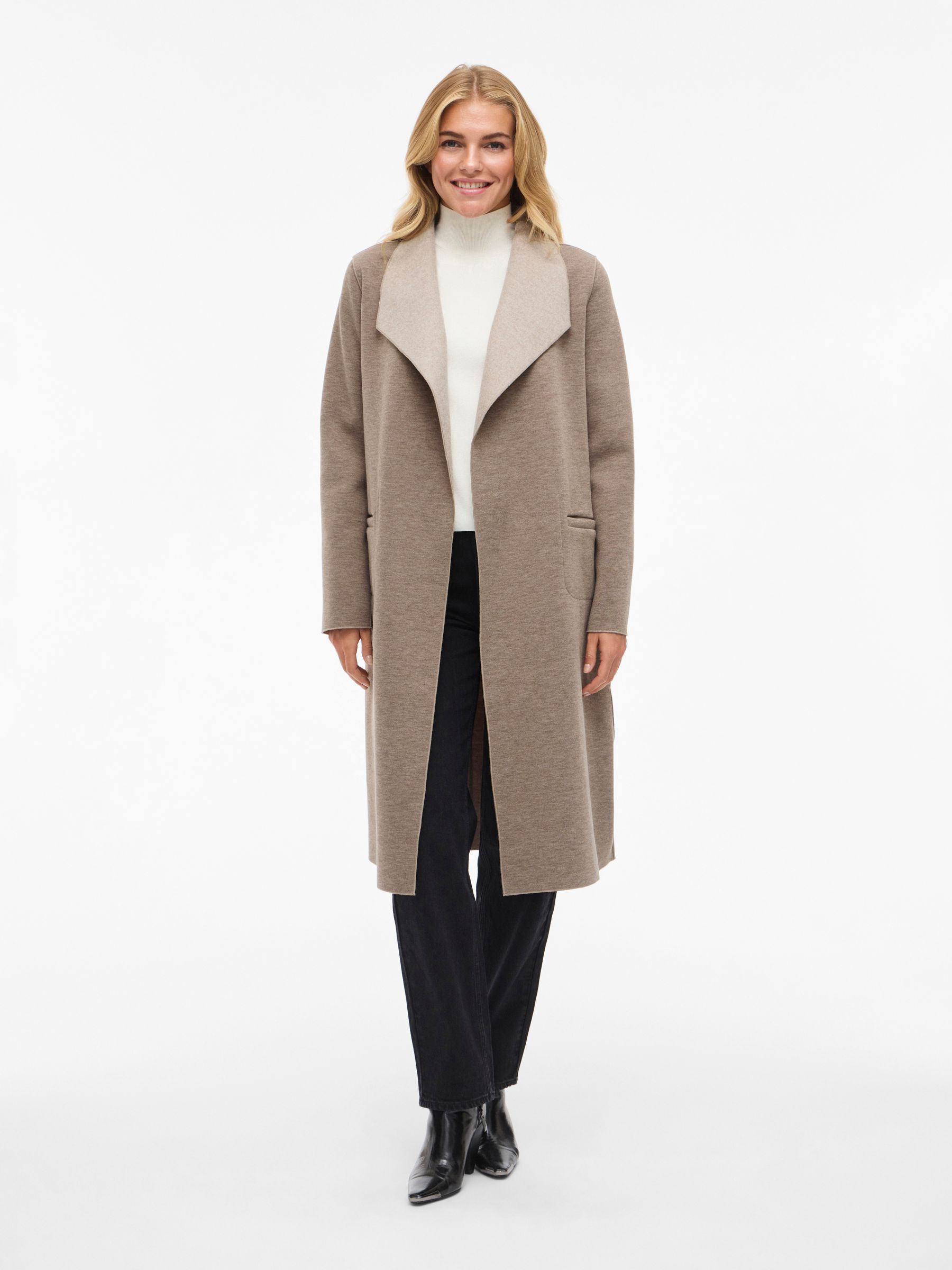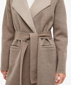 – Tie waist, coat – Two pockets- One inner pocket- Stretchy material- Transitional coat – Length: 110 cm in size 38 – Sleeve length: 64 cm in size 38- Our model is 178 cm tall and wears size 38
