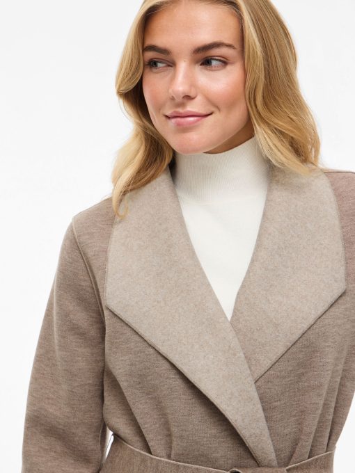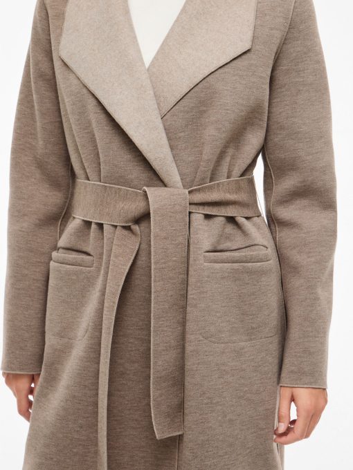 – Tie waist, coat – Two pockets- One inner pocket- Stretchy material- Transitional coat – Length: 110 cm in size 38 – Sleeve length: 64 cm in size 38- Our model is 178 cm tall and wears size 38