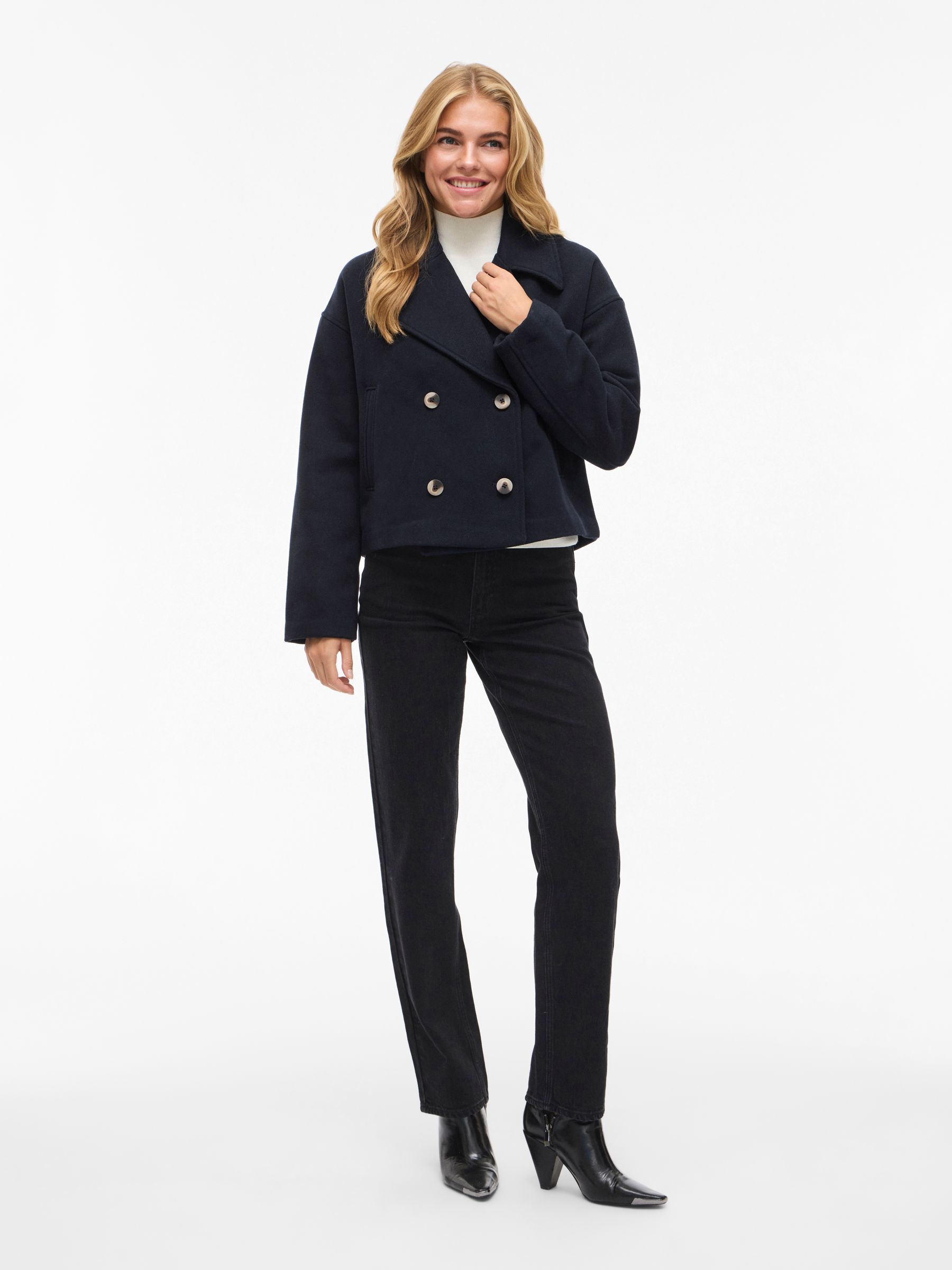 • Double-breasted jacket• V-neck• Side pockets• Dropped shoulders• Regular fit• Length: 60 cm in size 38• Sleeve length: 62 cm in size 38