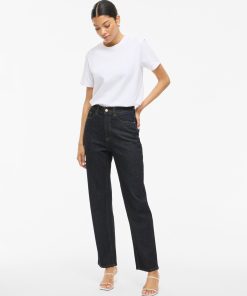 VILA Women’s Vikelly High-waist Straight Fit Jeans | Dark Blue Denim