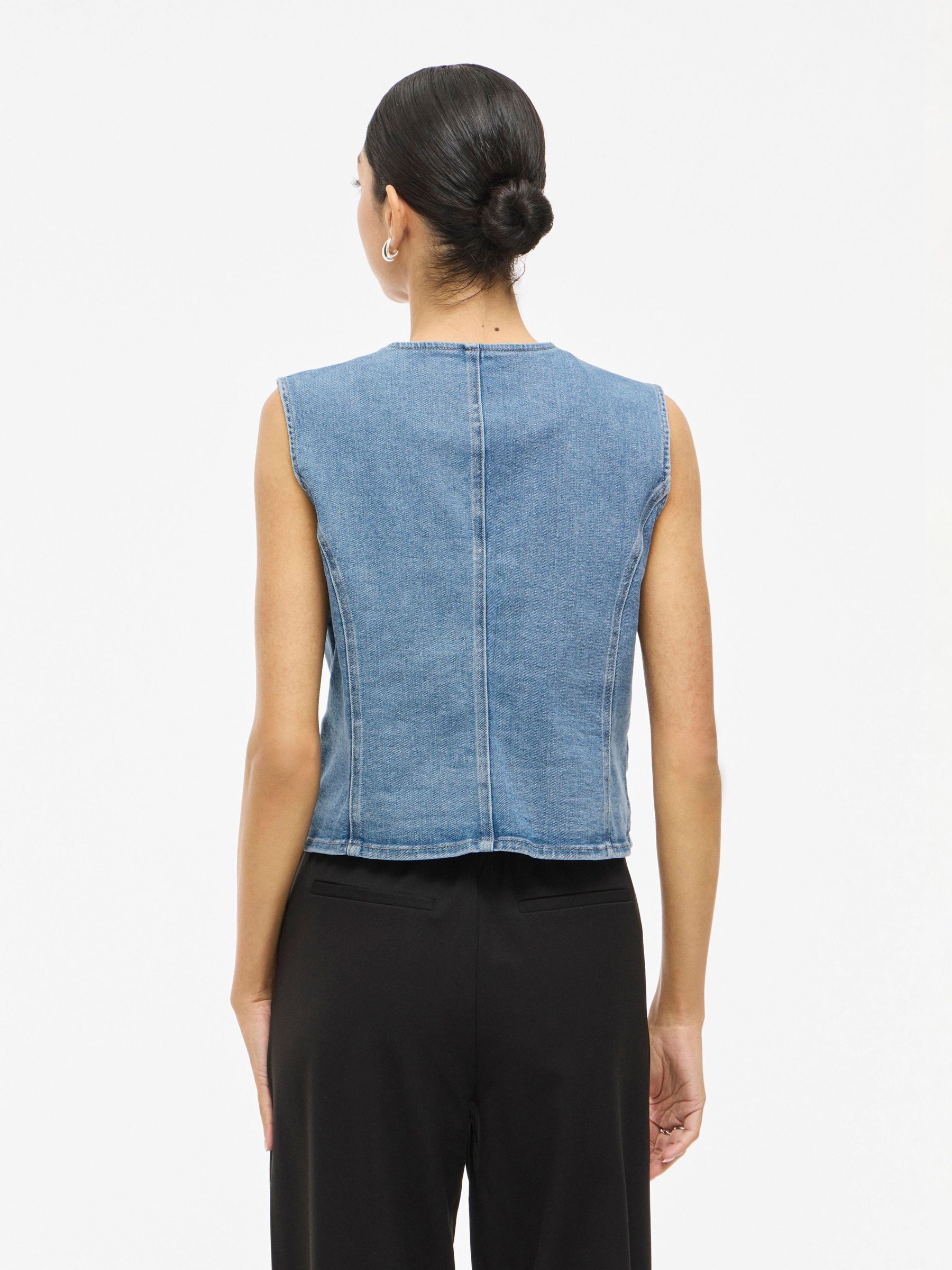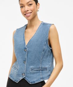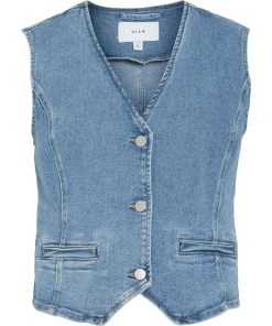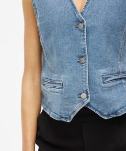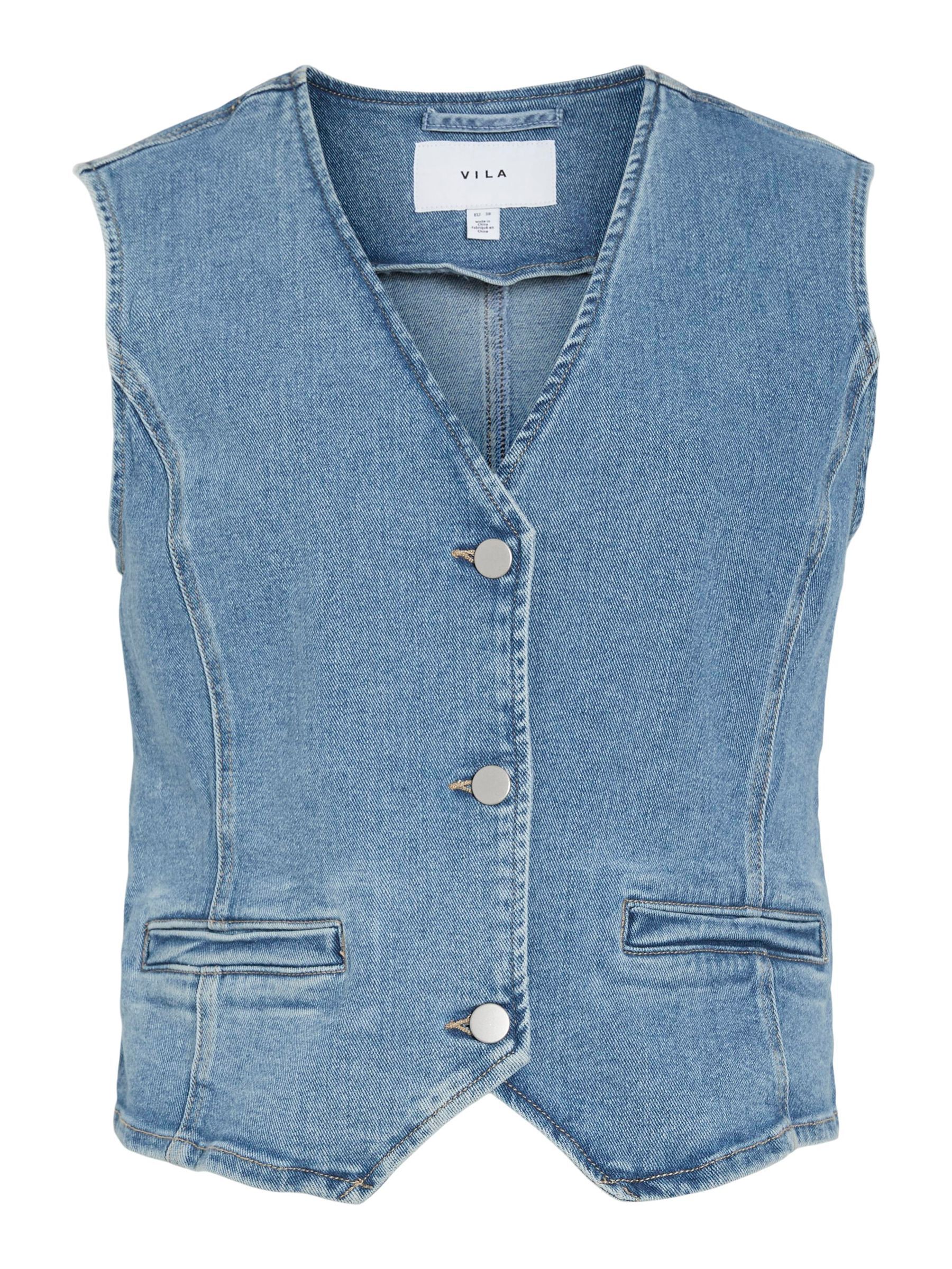 • Denim waistcoat• Front button fastening• V-neck• Decorative pockets• Regular fit• Front length: 55 cm in size 38• Back length: 50 cm in size 38