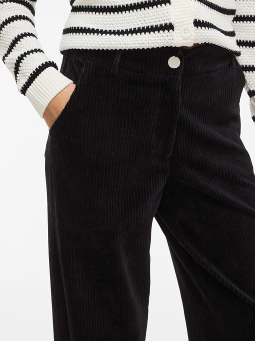 • Mid rise corduroy trousers• Front and back pockets• Zip and button fastening• Belt loops• Soft, slightly stretchy fabric• Wide fit• Inseam: 80 cm in size M• Frontrise: 27.5 cm in size M