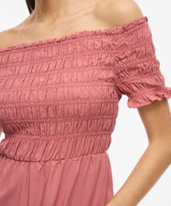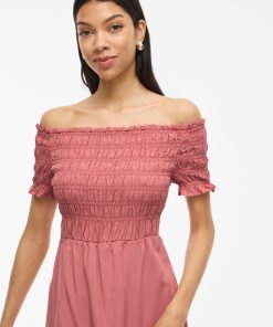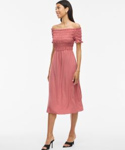 VILA Women’s Vilisa Off-shoulder Midi Dress | Brick Dust