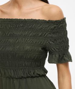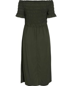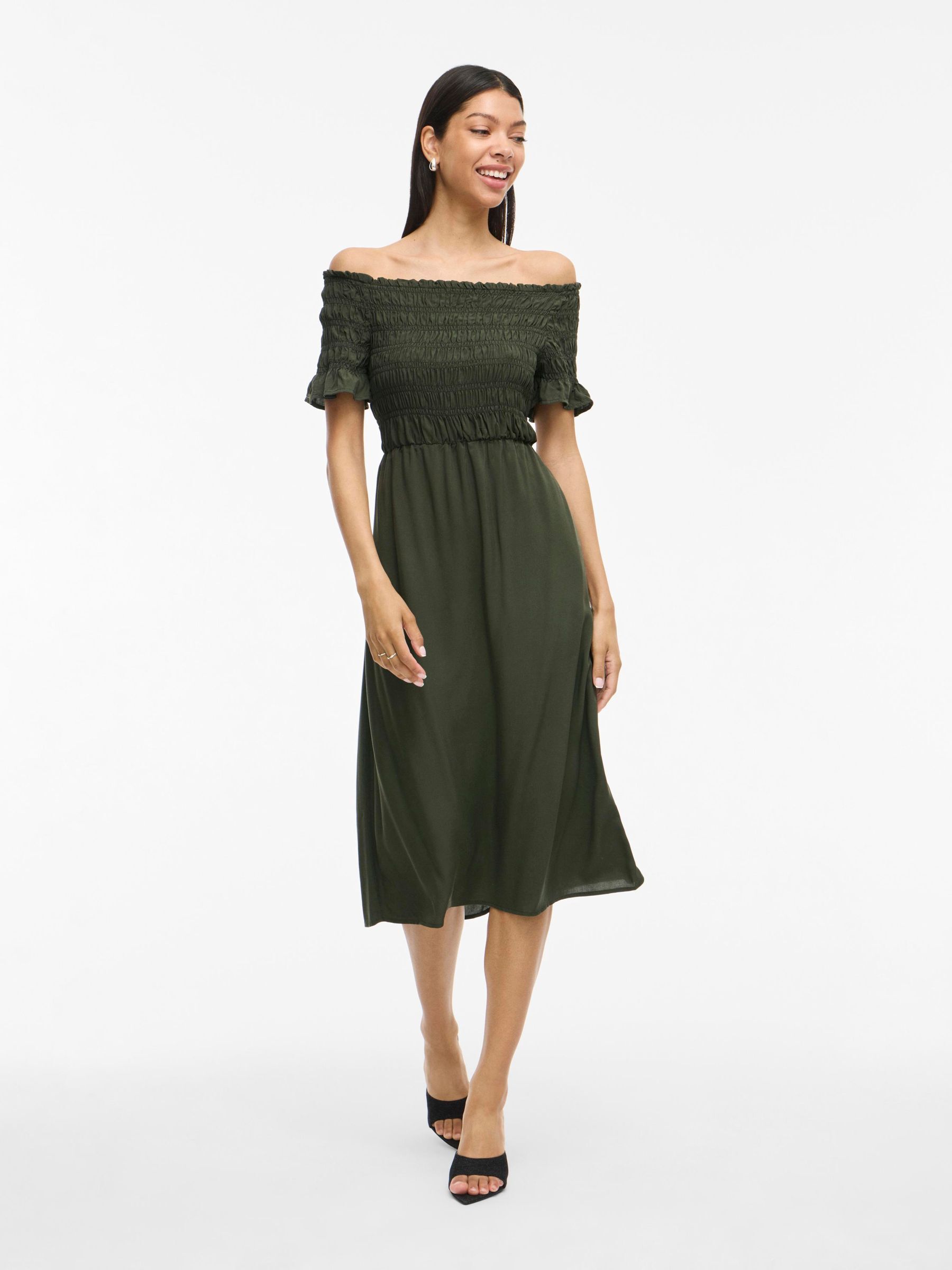 VILA Women’s Vilisa Off-shoulder Midi Dress | Deep Depths