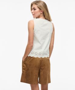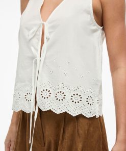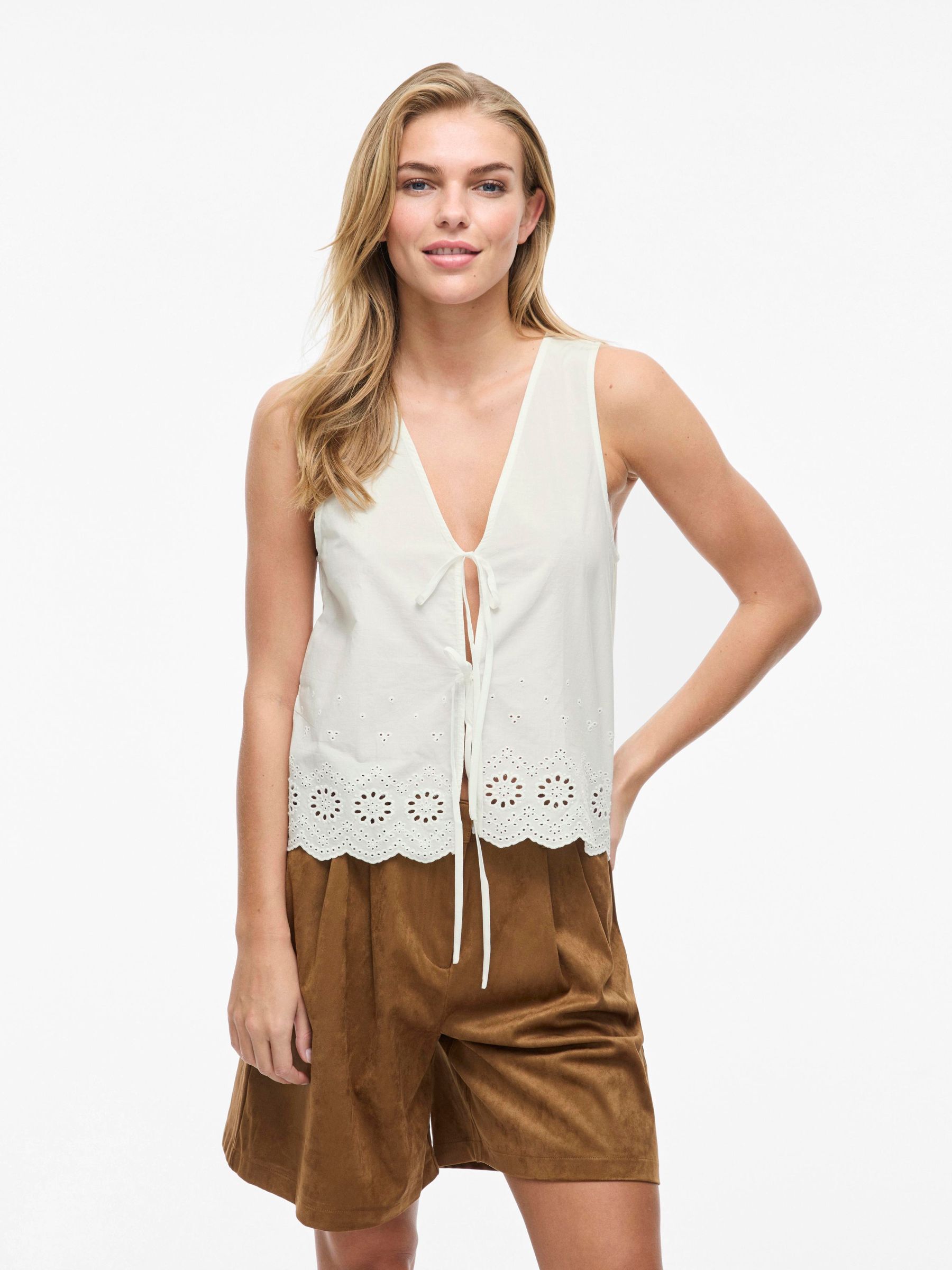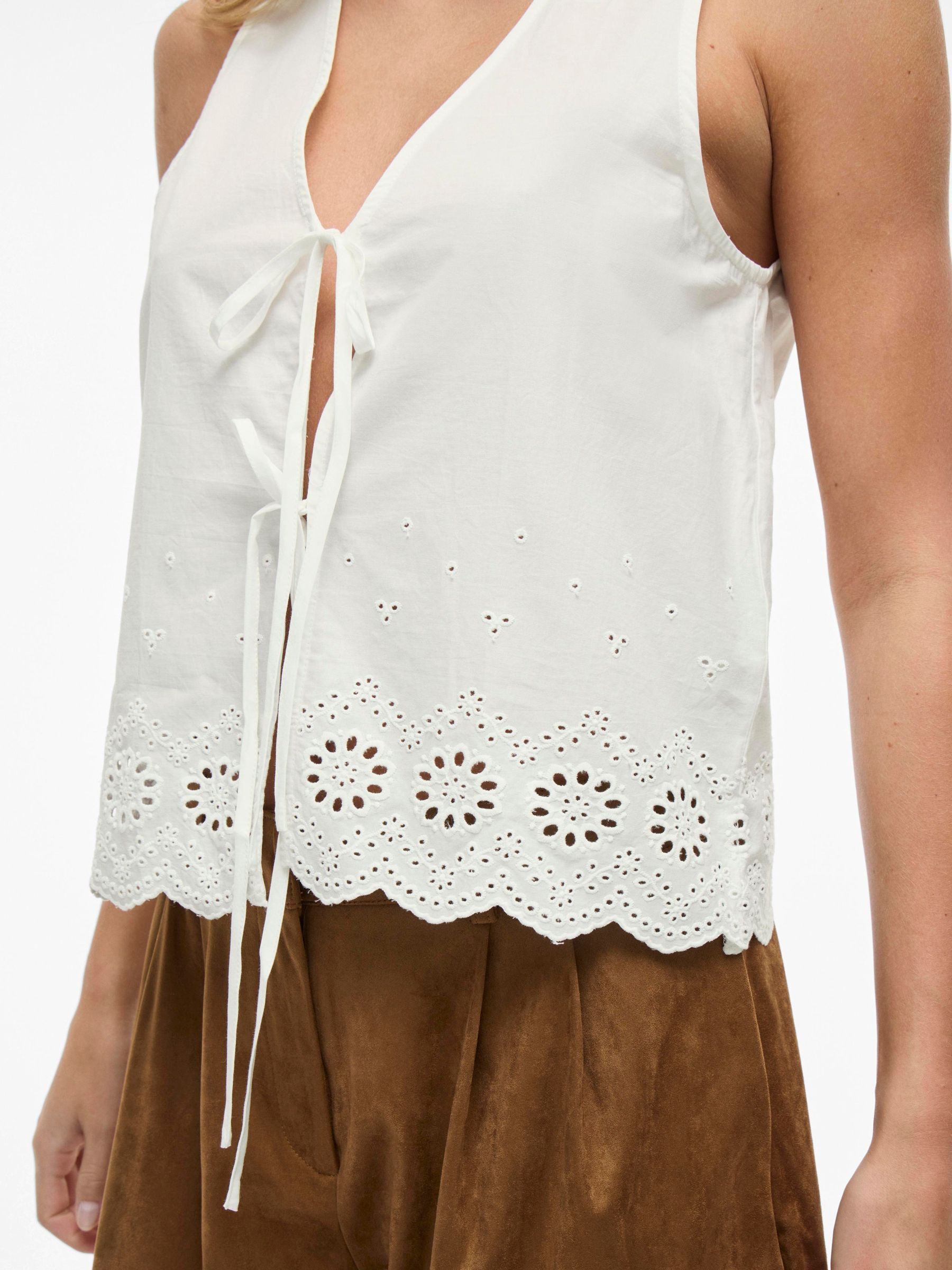 • Sleeveless front tie top• V-neck• See-through details• Light fabric• Regular fit• Length: 56 cm in size 38