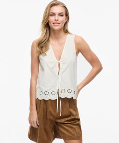 • Sleeveless front tie top• V-neck• See-through details• Light fabric• Regular fit• Length: 56 cm in size 38