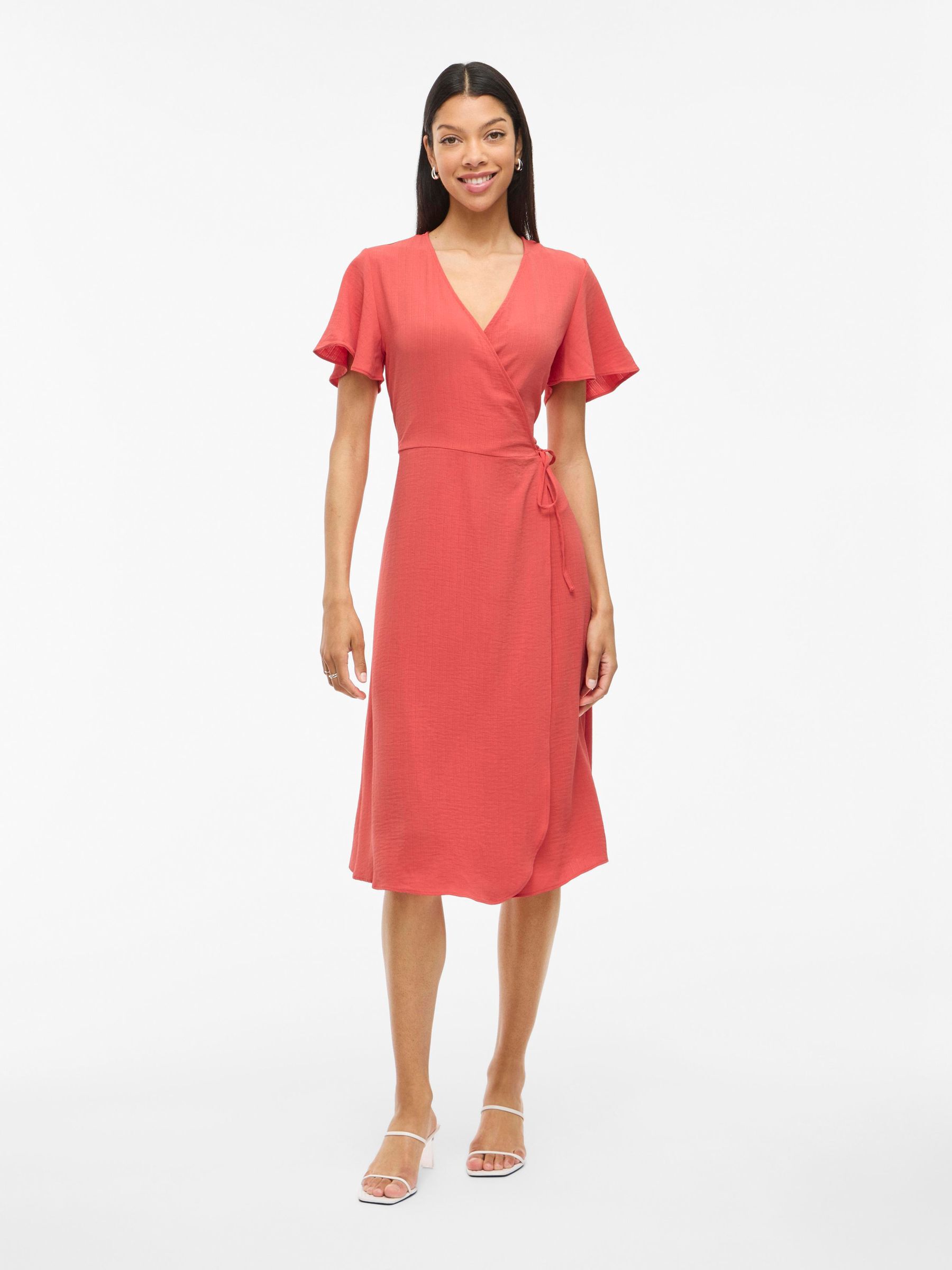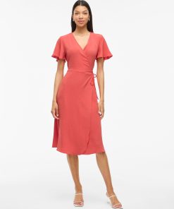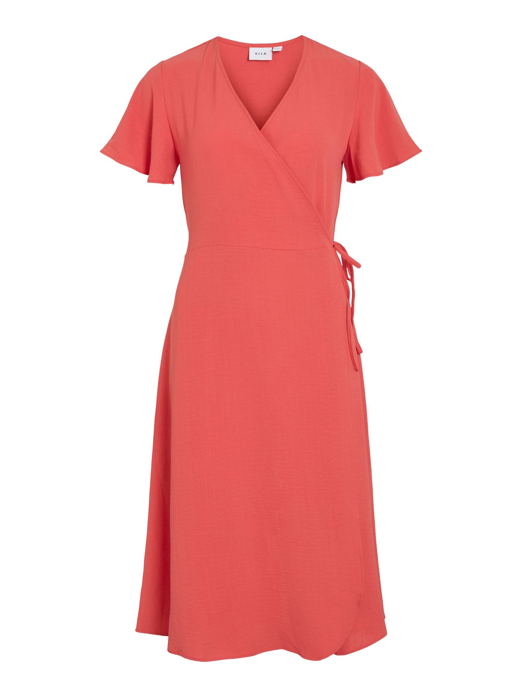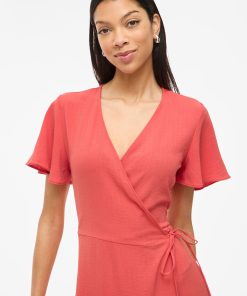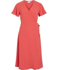 VILA Women’s Vilovie Short Sleeved Wrap Dress | Paprika