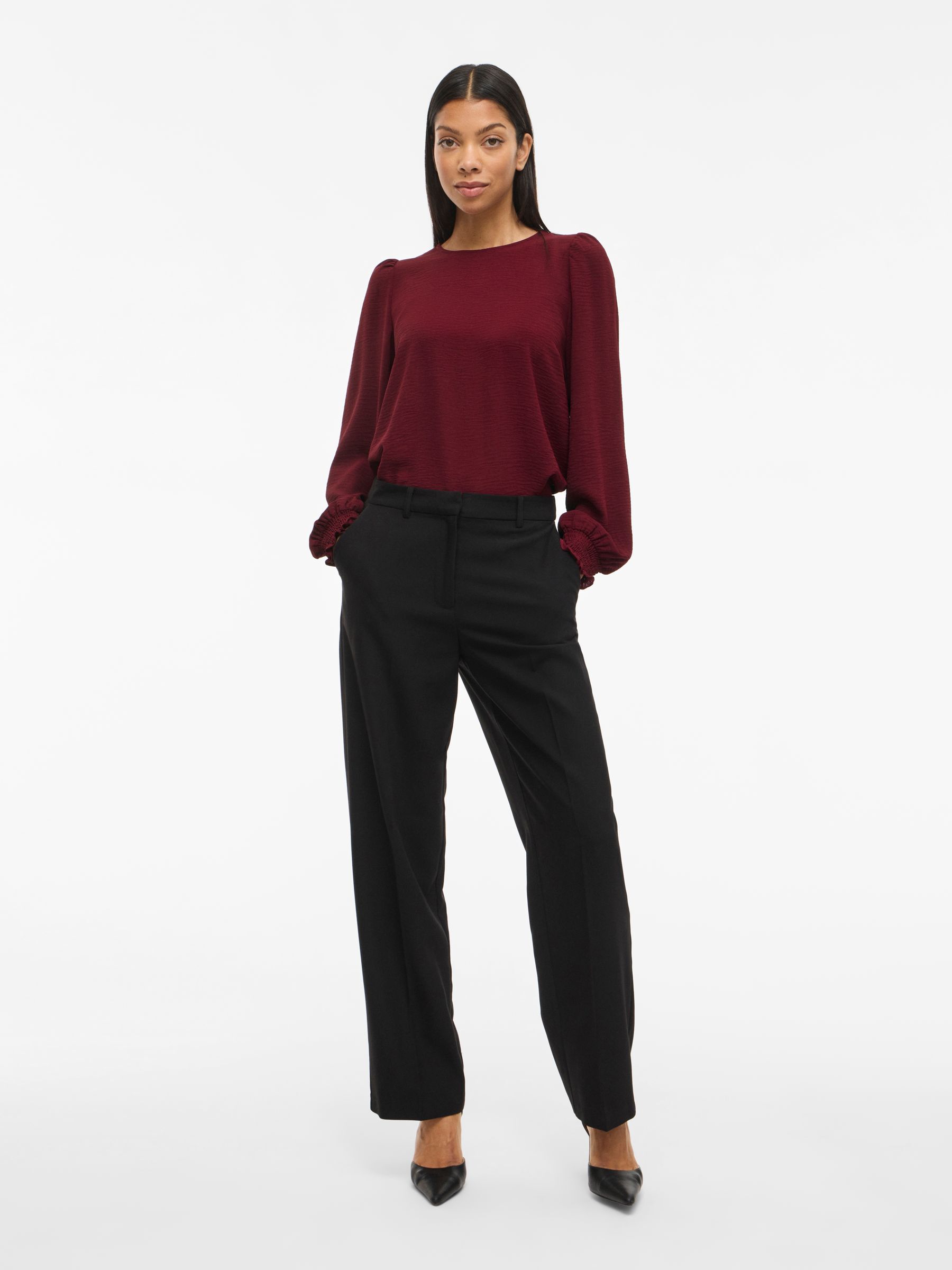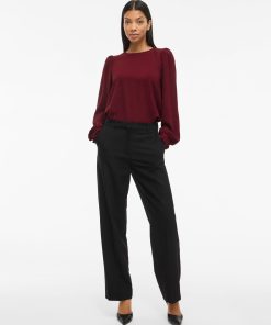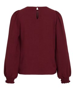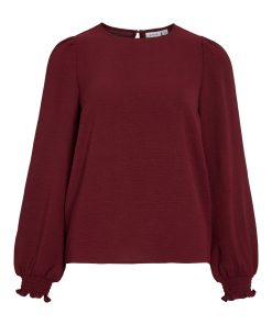 VILA Women’s Vimay Round Neck Long Sleeved Top | Cabernet