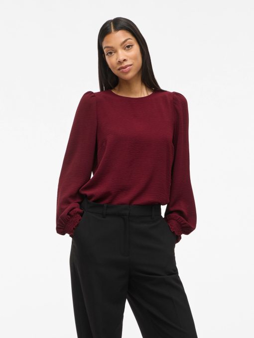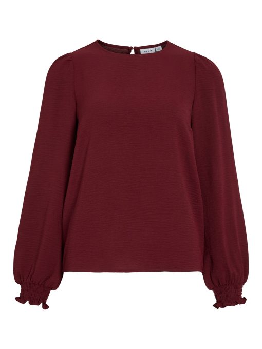 VILA Women’s Vimay Round Neck Long Sleeved Top | Cabernet