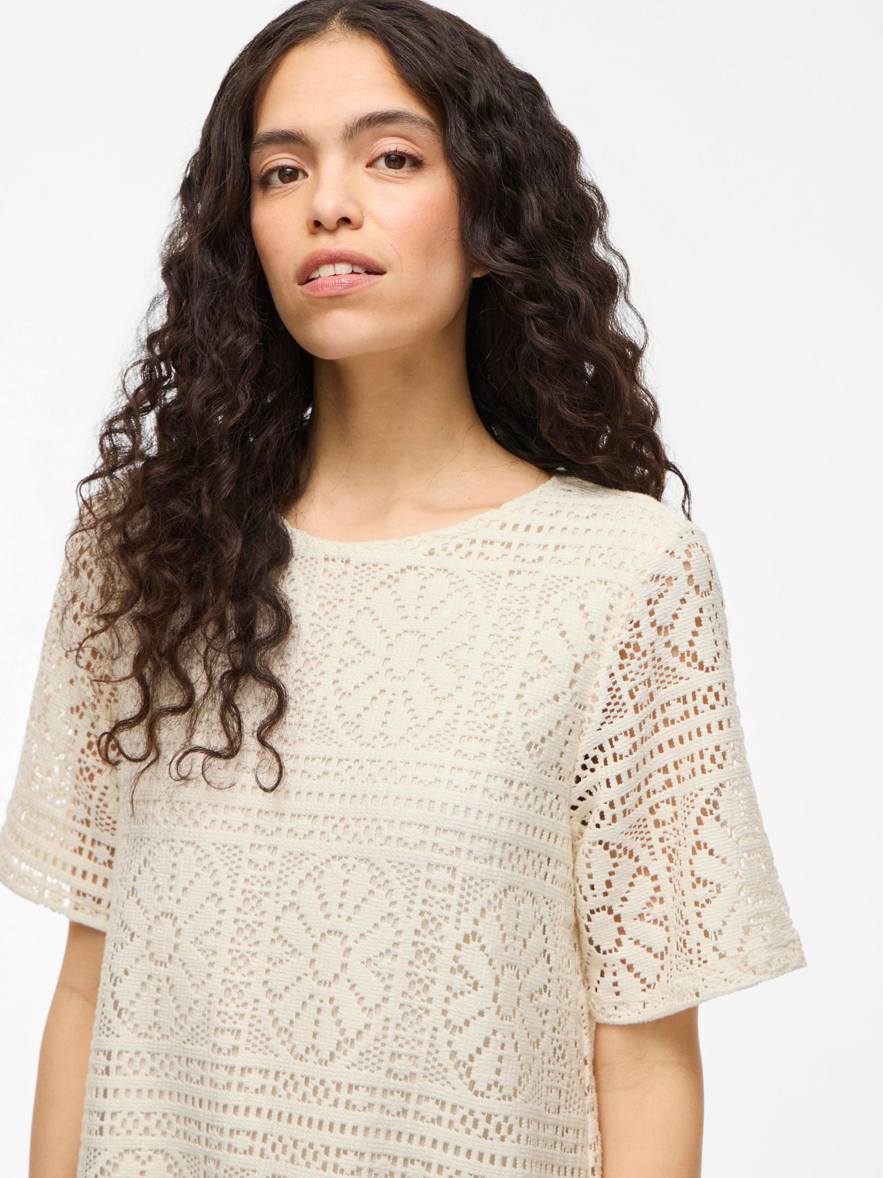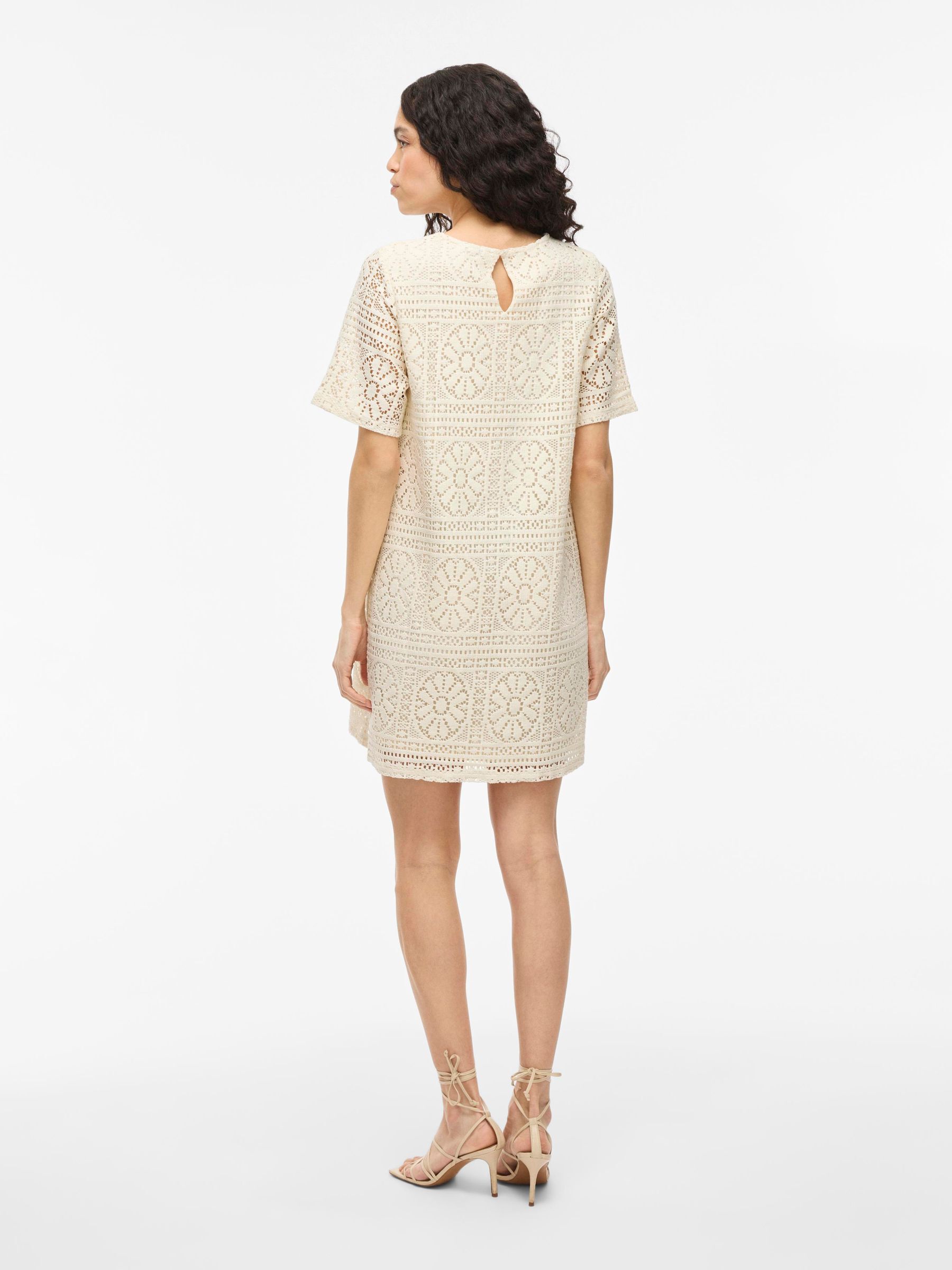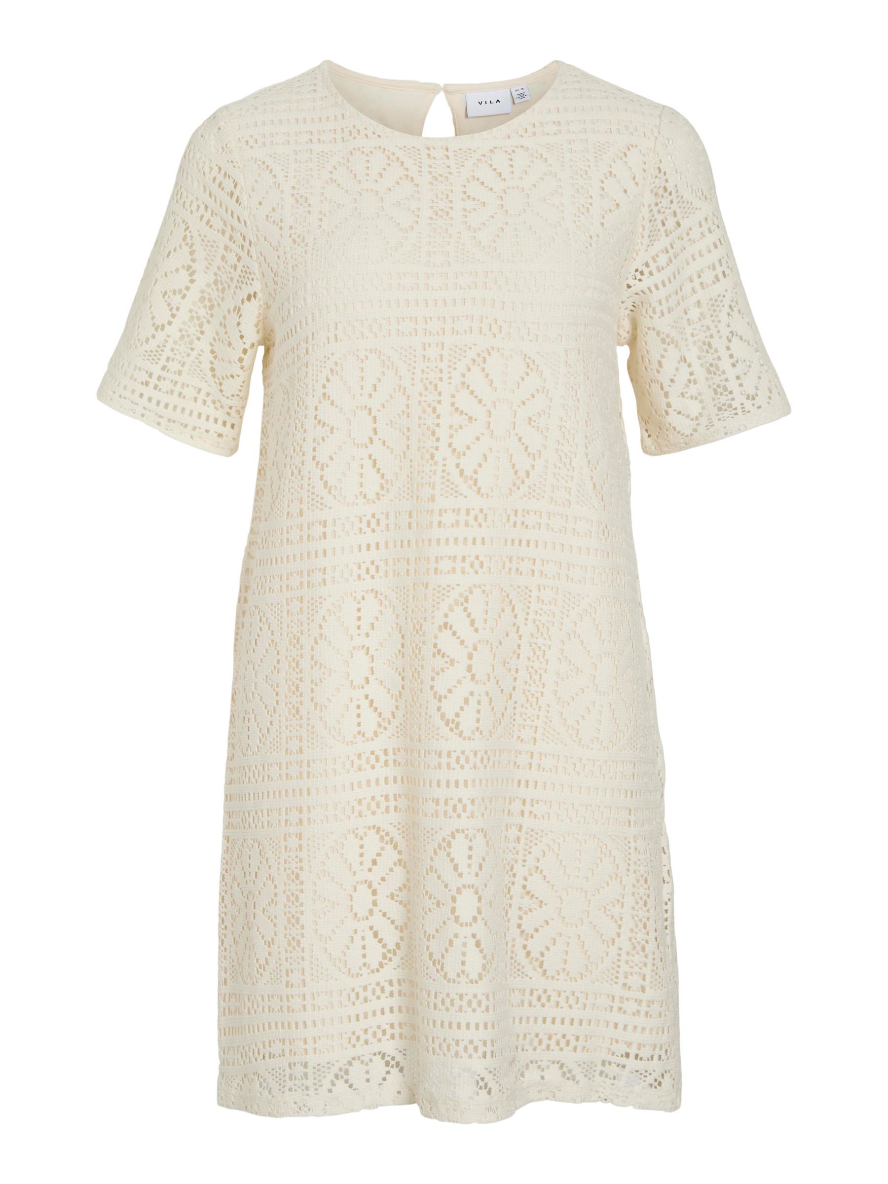 • Short-sleeved crochet dress• Short-length• Round neck with button-keyhole fastening• Lined body• Regular fit• Length: 92 cm in size M• Sleeve length: 28 cm in size M