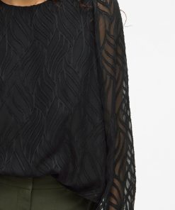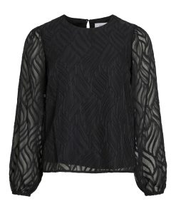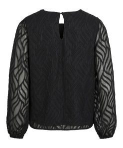 VILA Women’s Vimika Round Neck Long Sleeved Top | Black Beauty