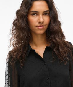 VILA Women’s Vimirena Dotted Long Sleeved Shirt | Black Beauty