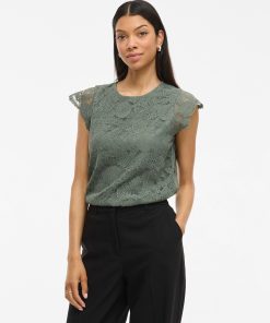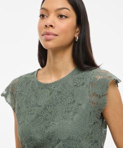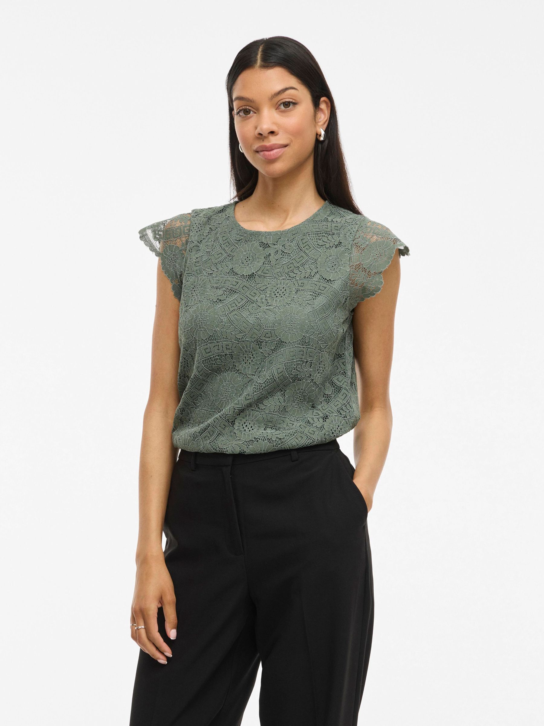 • Short sleeved lace top• Round neck with button-keyhole fastening• Lined body with sheer overlay• Regular fit• Length: 62 cm in size M• Sleeve length: 9 cm in size M