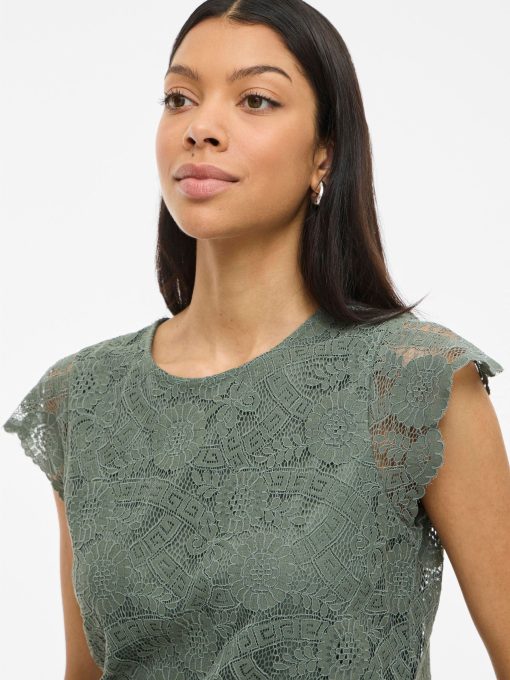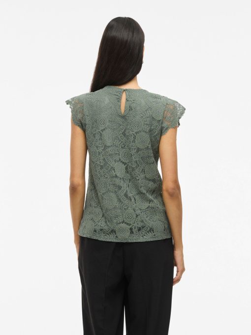 • Short sleeved lace top• Round neck with button-keyhole fastening• Lined body with sheer overlay• Regular fit• Length: 62 cm in size M• Sleeve length: 9 cm in size M