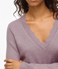 VILA Women’s Vinikolina V-neck Knitted Pullover | Toadstool
