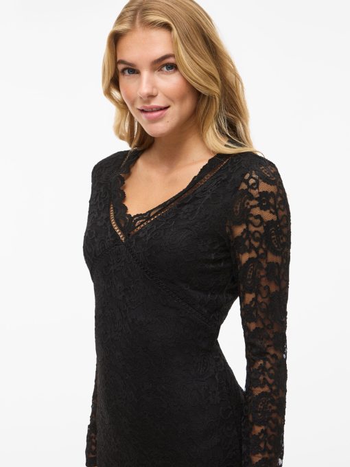 • Lace party dress• Long sleeves• Short-length• V-neck• Lined body with sheer overlay• Regular fit• Length: 92 cm in size M• Sleeve length: 66 cm in size M