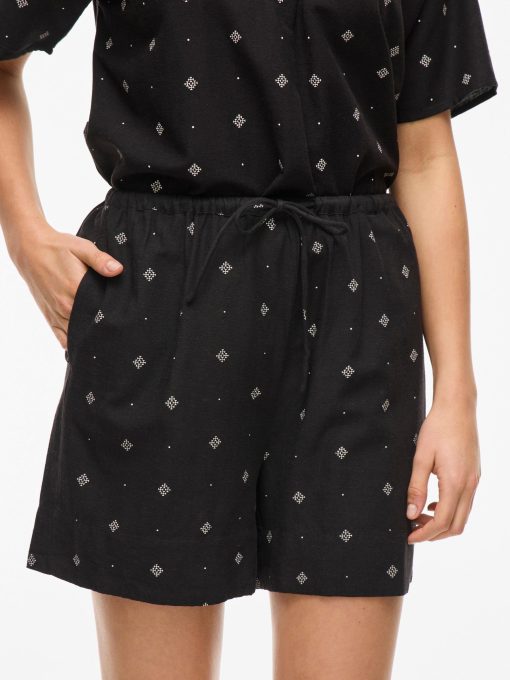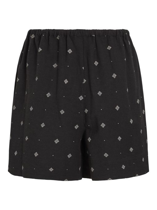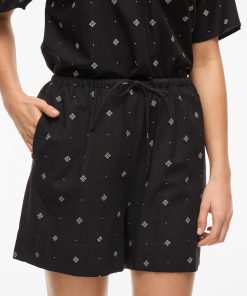 • Mid-waist shorts• Printed fabric• Elastic, tie string waist• Side pockets• Inseam: 12 cm in size M• Frontrise: 32 cm in size M