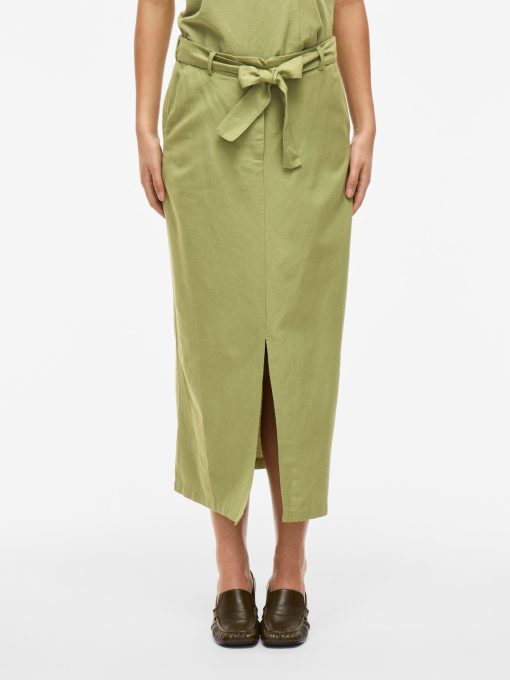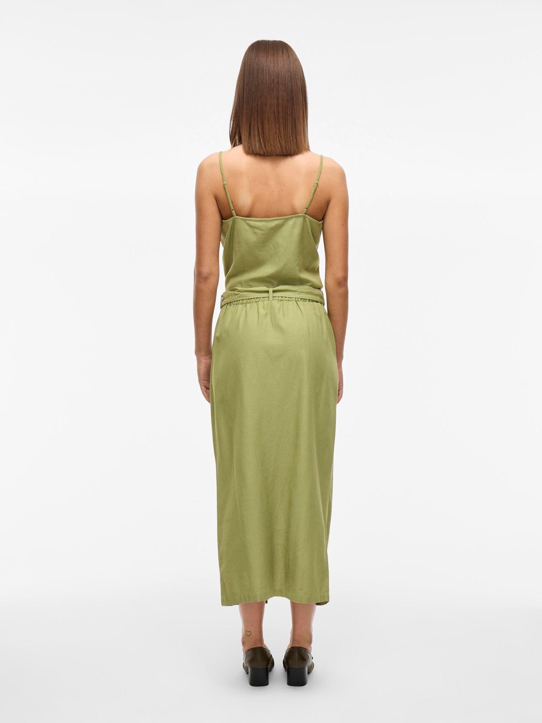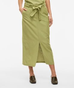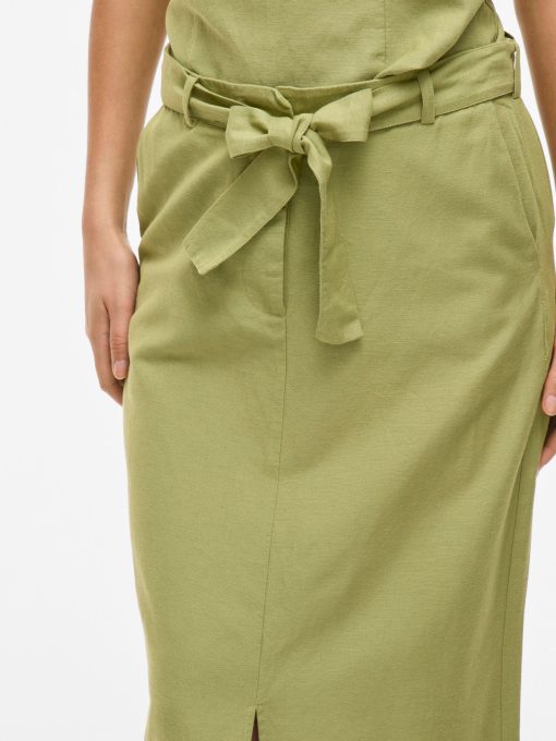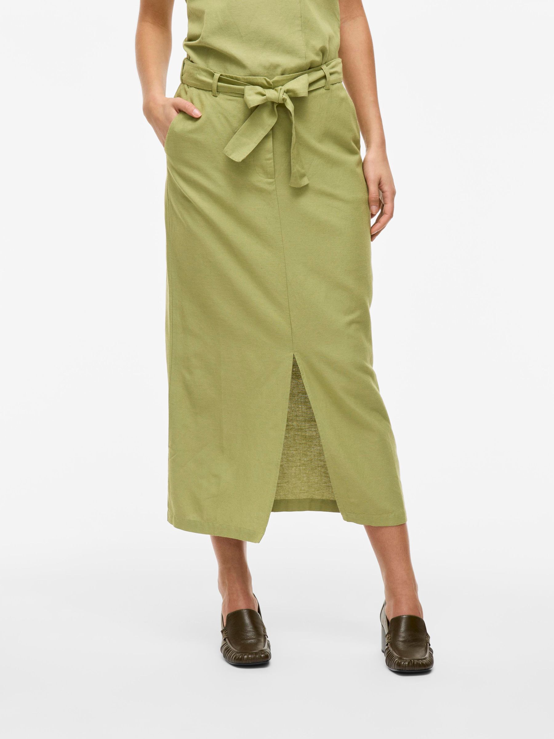 • Midi pencil skirt• Front slit detail• Zip-up fly with hook and button fastening• Stretch-back waist• Side pockets• Belt loops with removable belt• Includes linen• Regular fit• Length: 88.5 cm in size 38