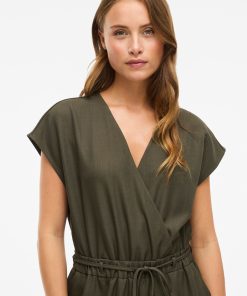 • Short sleeved jumpsuit• Elasticated waist• Comes with removable belt• V-neck• Side pockets• Regular fit• Inseam: 74 cm in size 38• Frontrise: 34 cm in size 38• Sleeve length: 10 cm in size 38