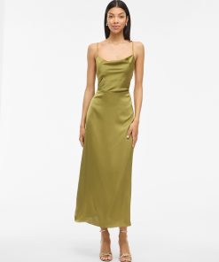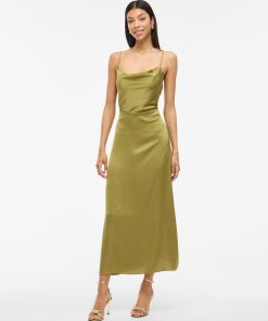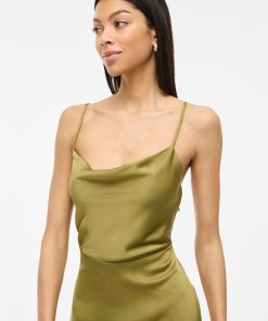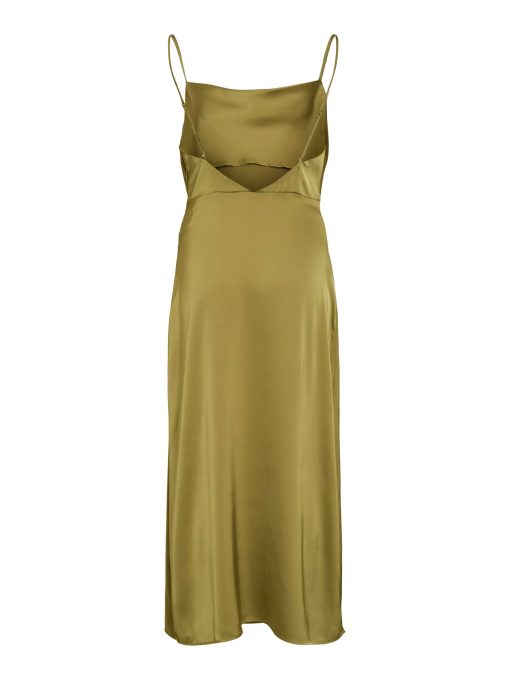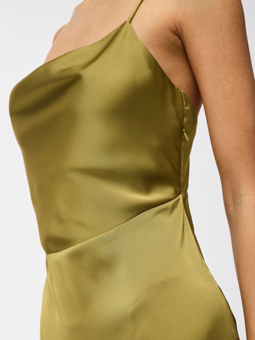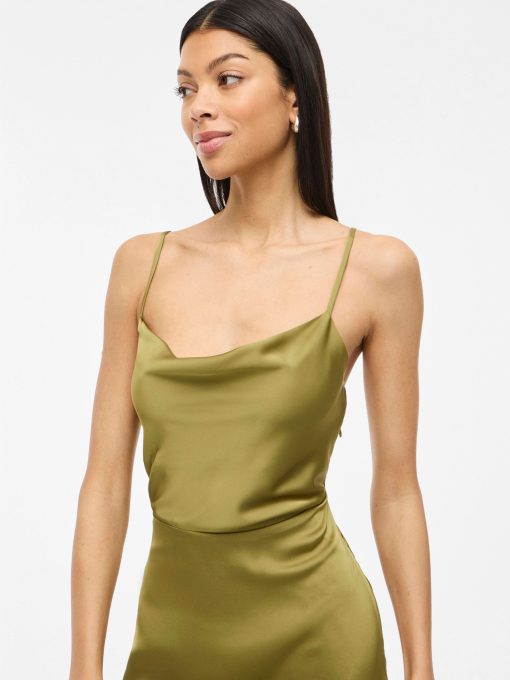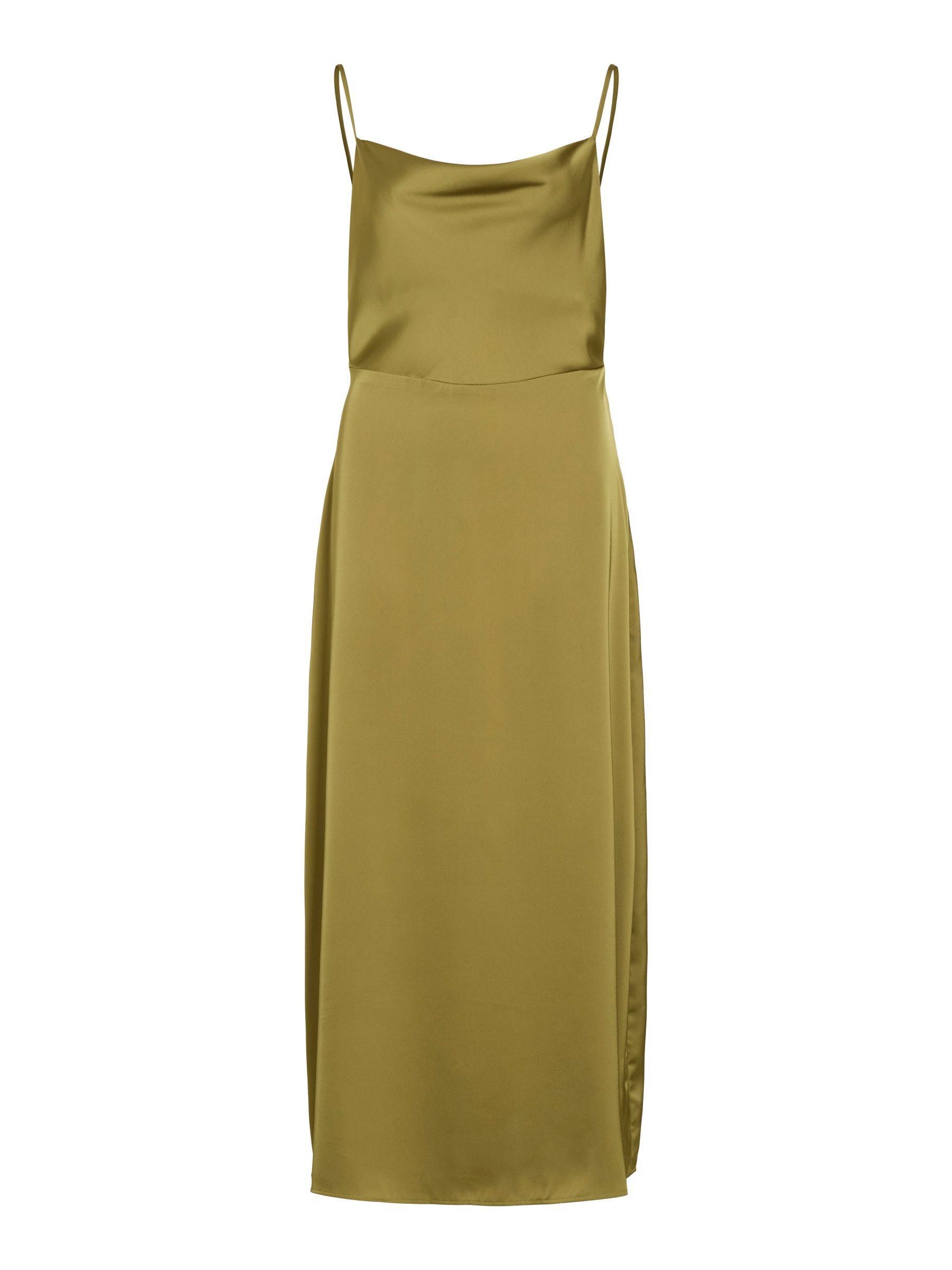 • Maxi occasion dress with adjustable straps• Cowl neckline at the front• Open back• Concealed side zip fastening• Cutline at waist• Shiny, non-stretchable fabric• Length: 136 cm in size 38
