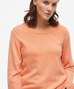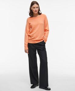 VILA Women’s Viril Round Neck Knitted Pullover | Cadmium Orange