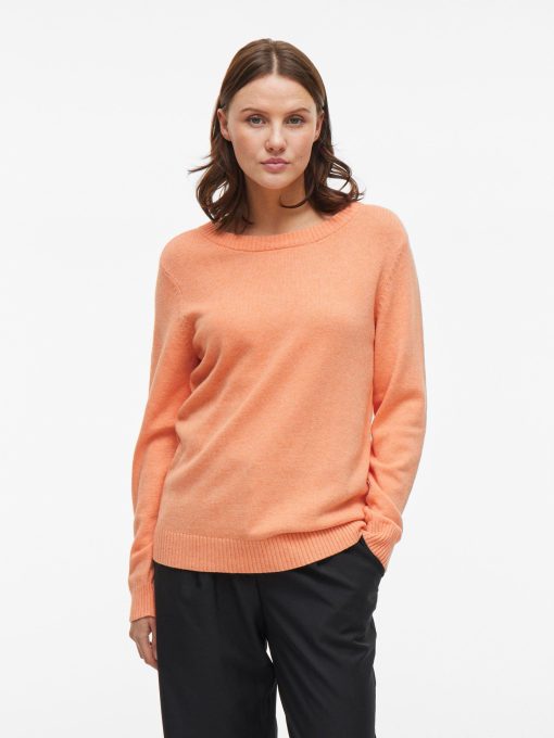 VILA Women’s Viril Round Neck Knitted Pullover | Cadmium Orange